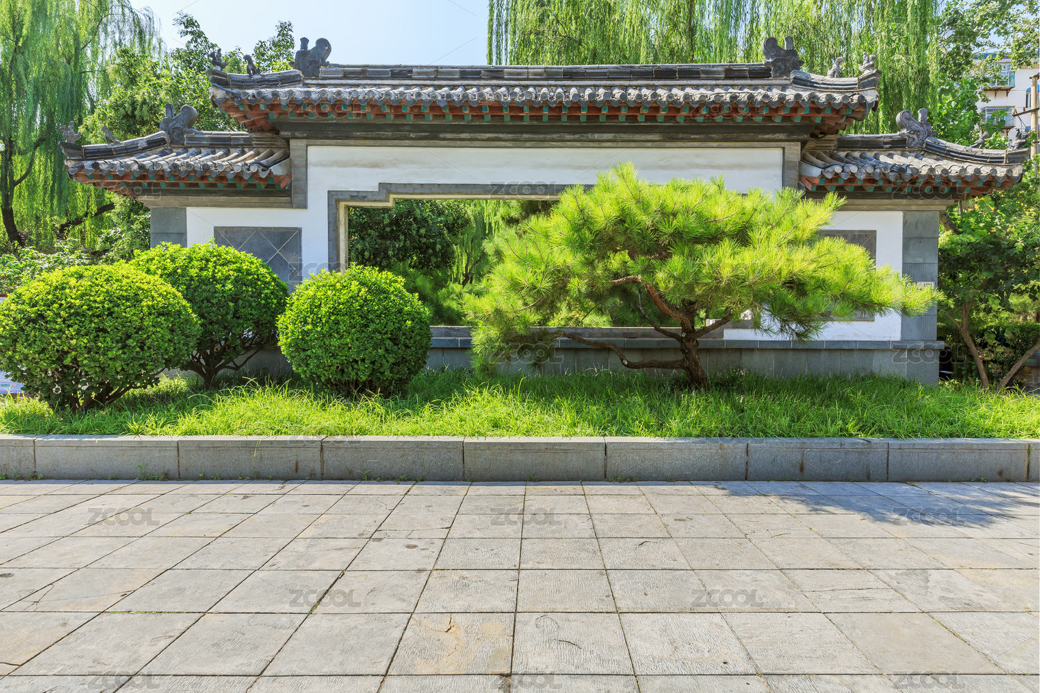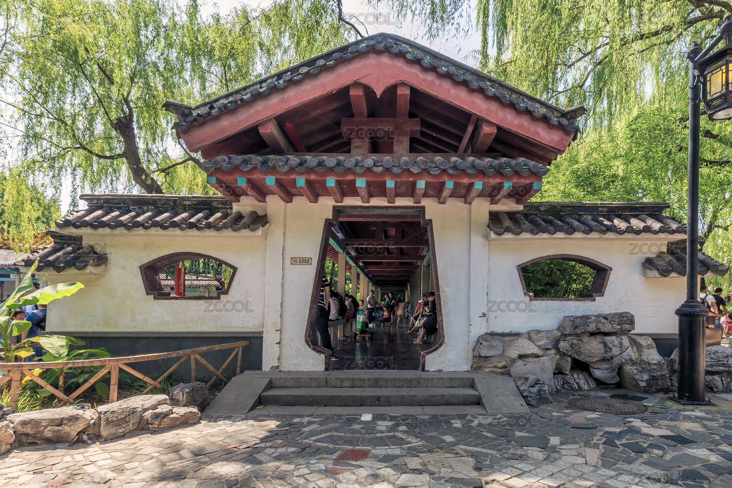 中式園林八角門(mén)景觀(guān),中國(guó)山東省濟(jì)南市趵突泉景區(qū)