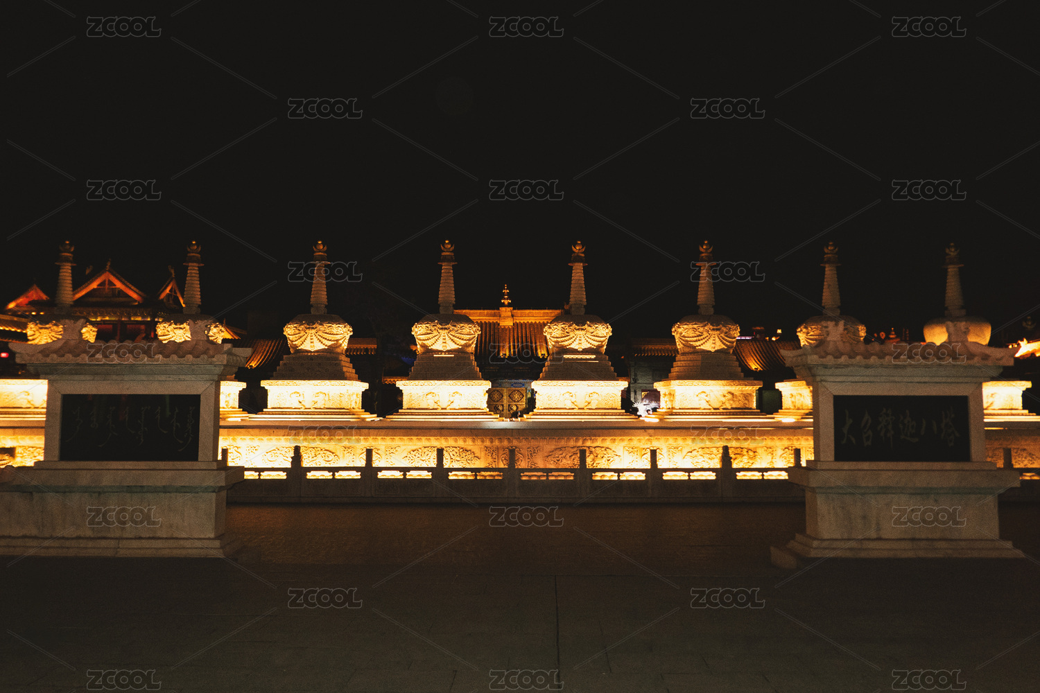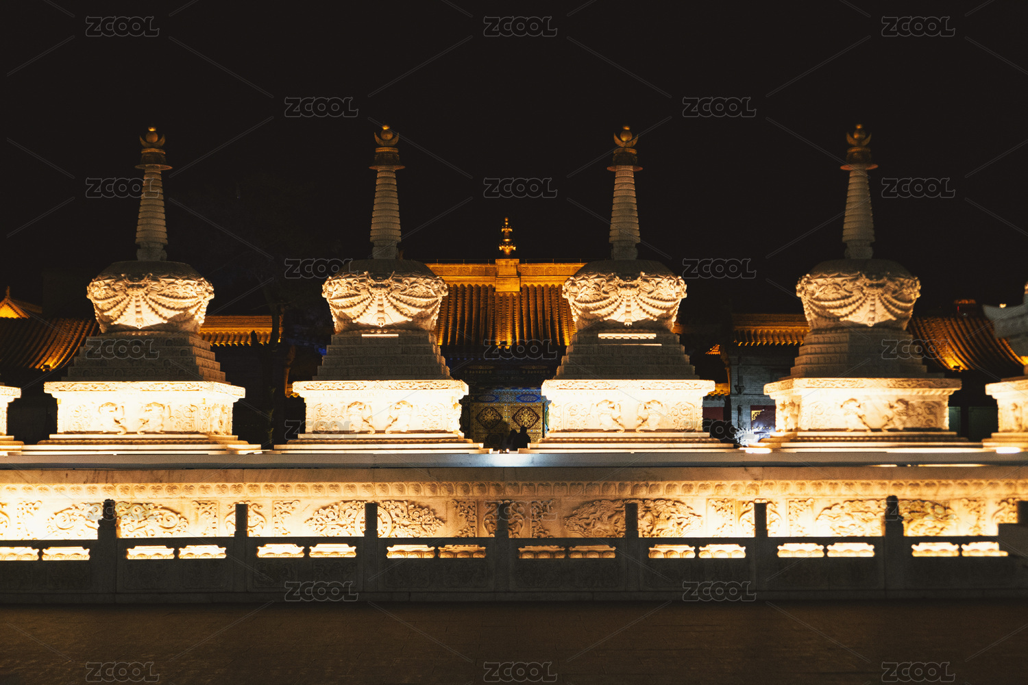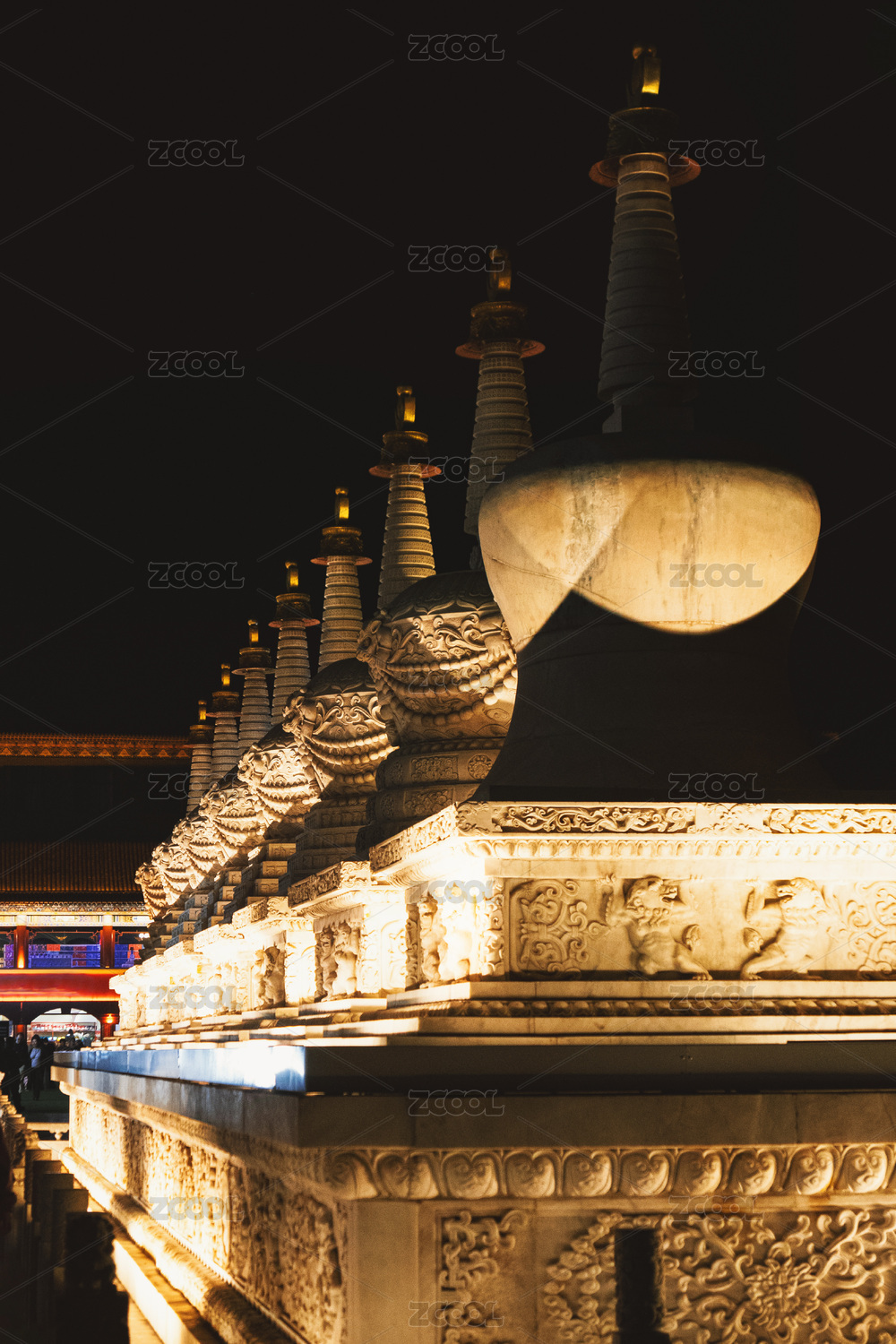 內(nèi)蒙古呼和浩特塞上老街夜色中的白塔群