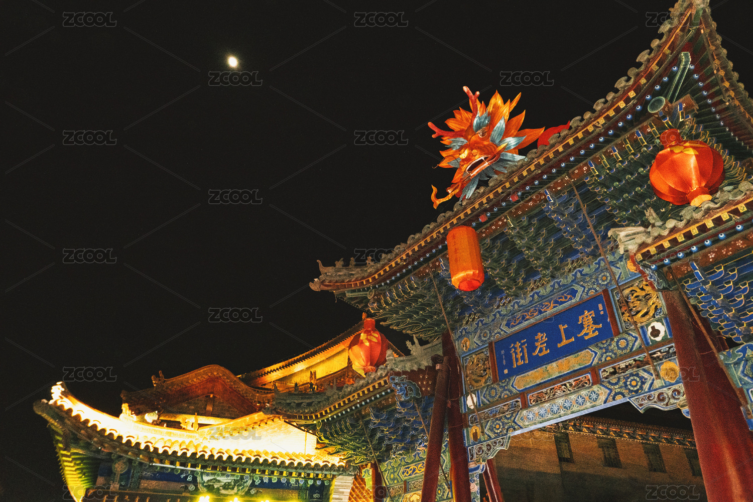 呼和浩特塞上老街匾額夜景