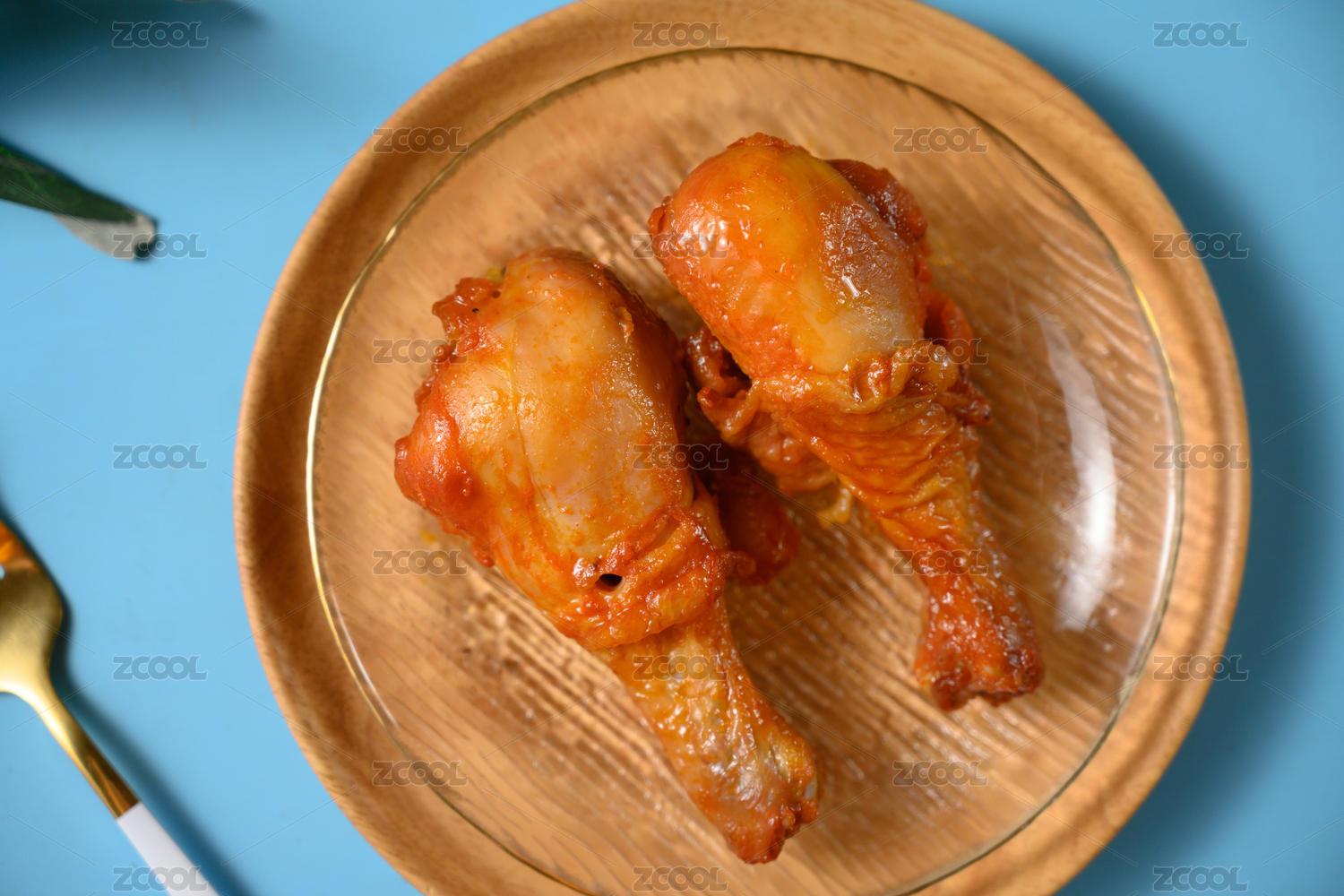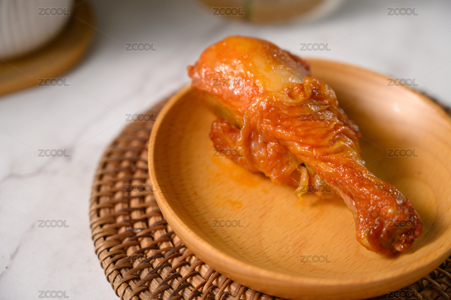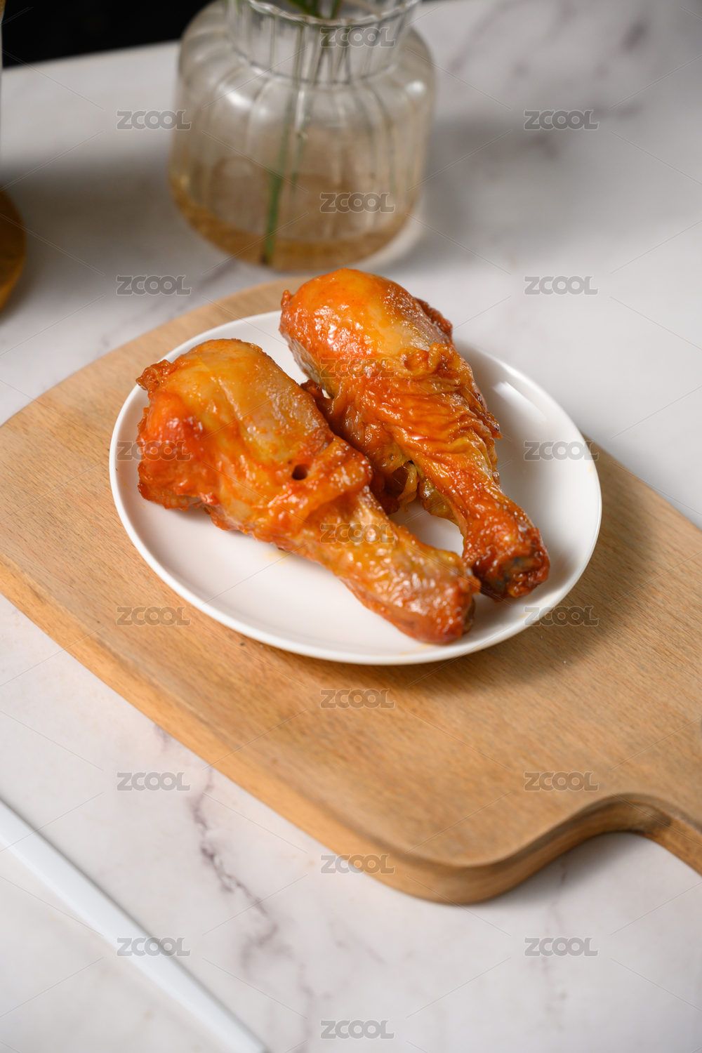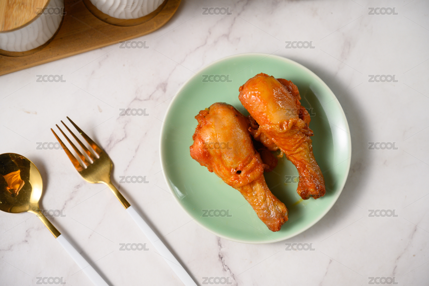 桌面上的盤子里的美味可口的奧爾良雞腿