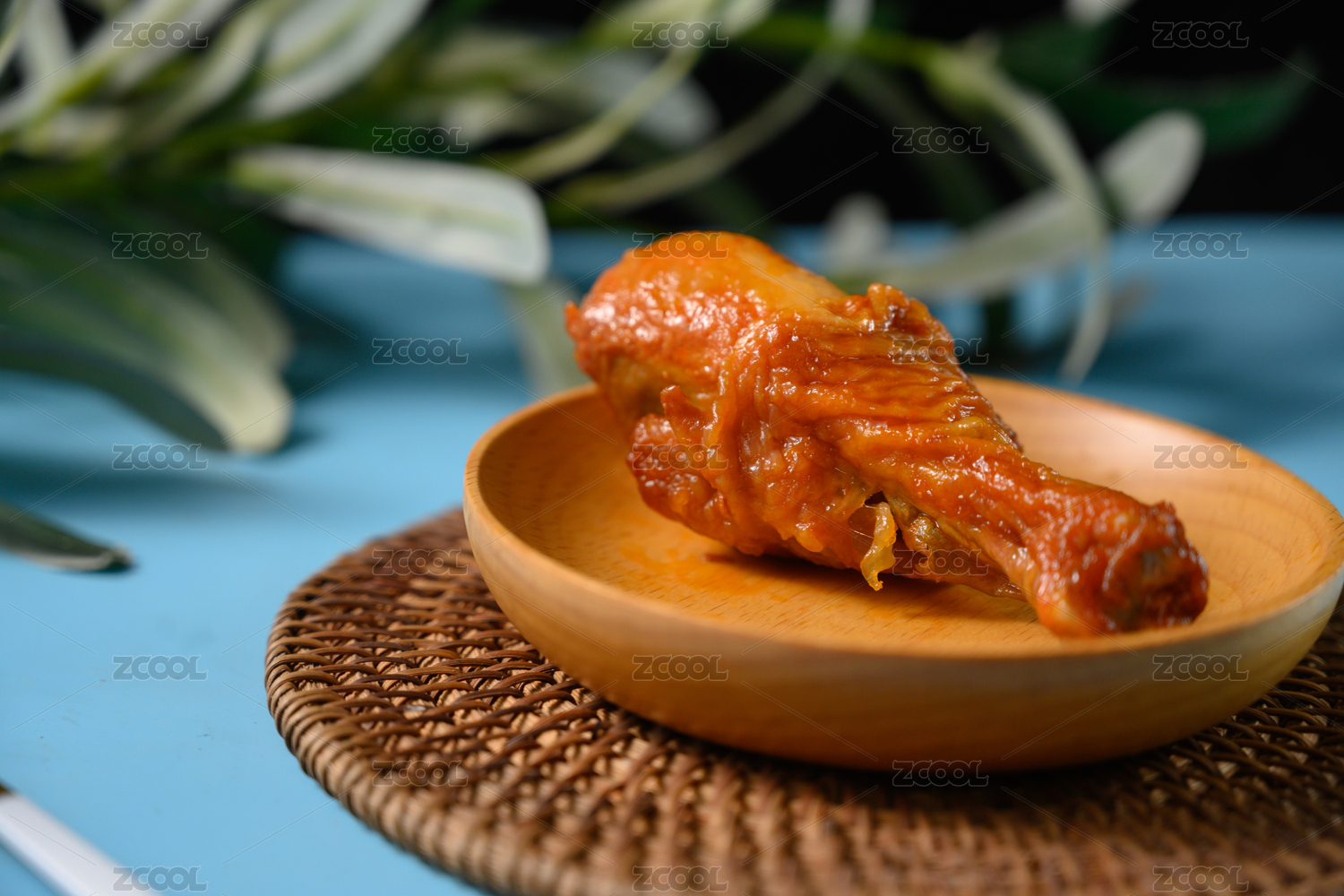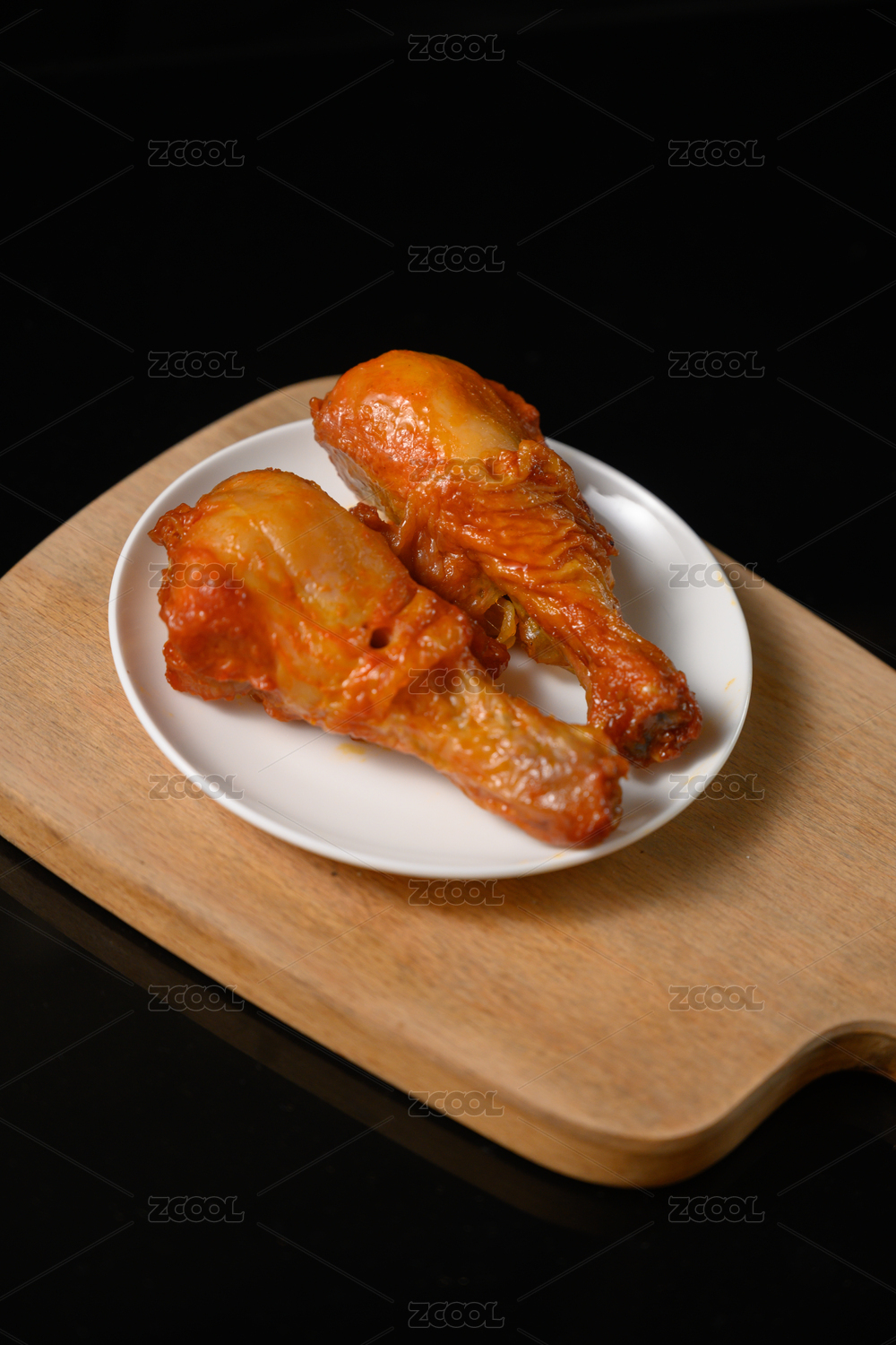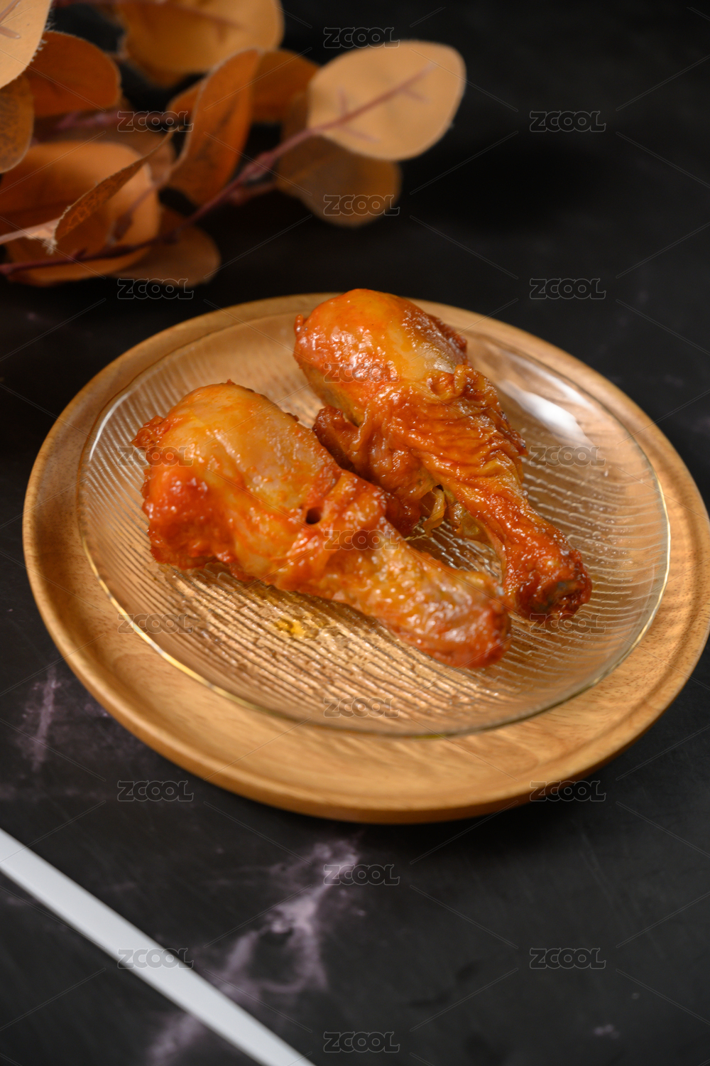 桌面上的盤子里的美味可口的奧爾良雞腿