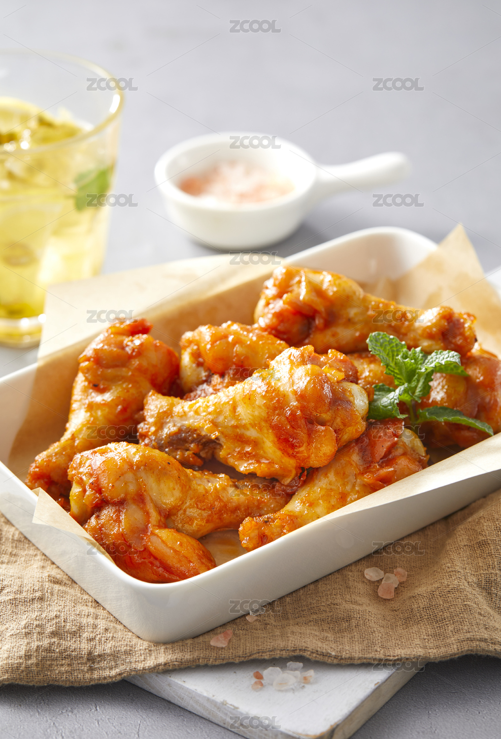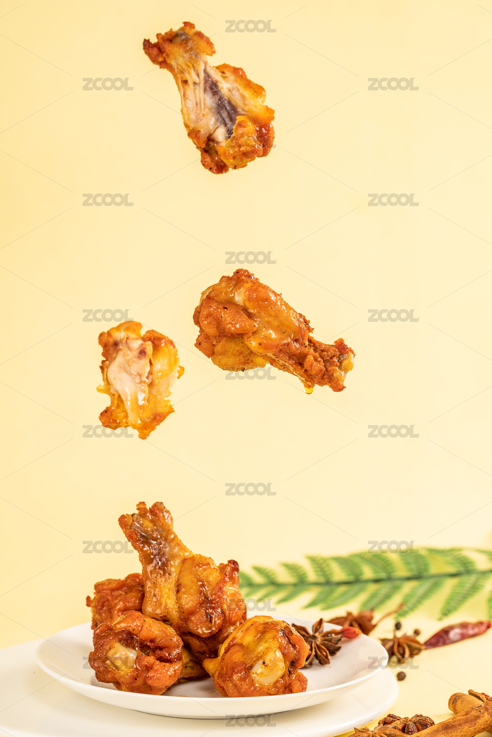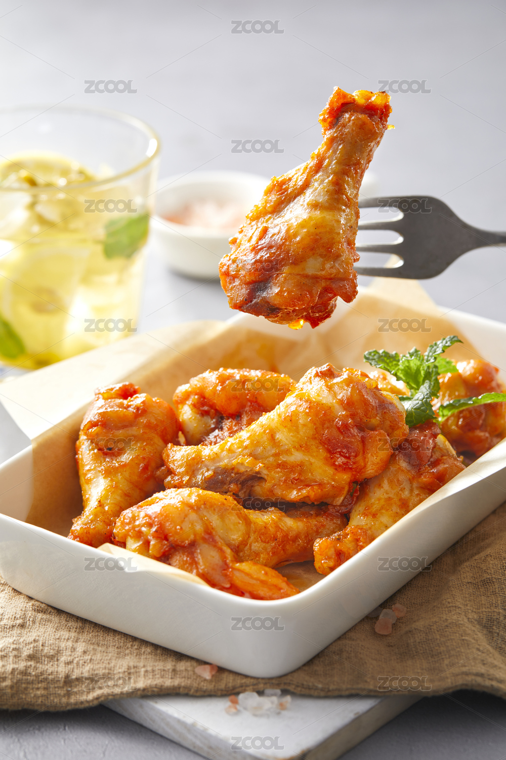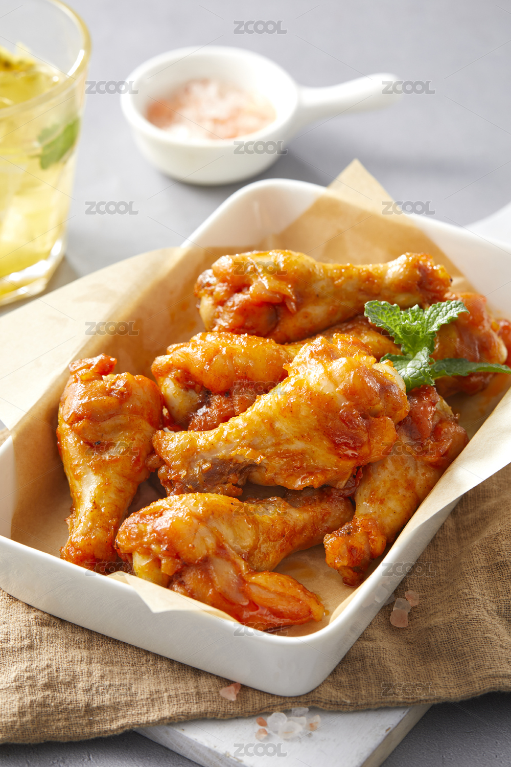 桌面上的盤子里的美味可口的奧爾良雞腿