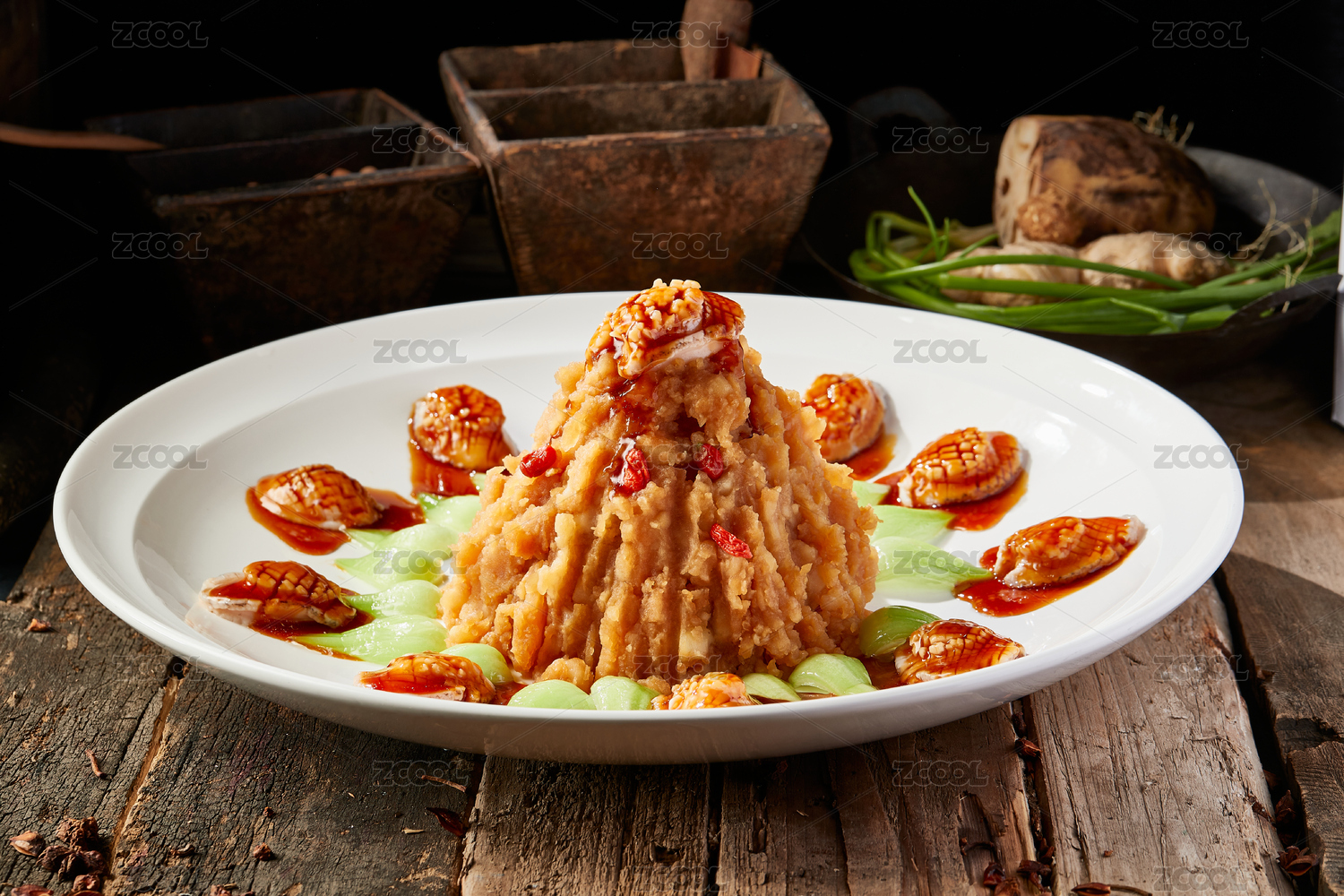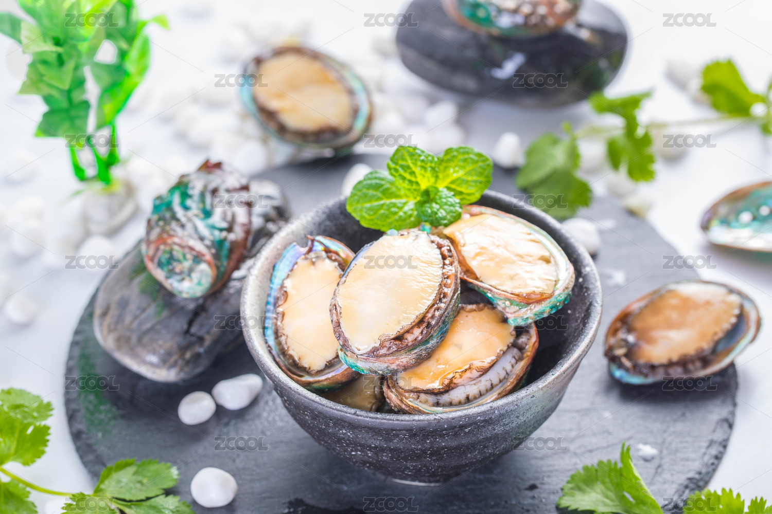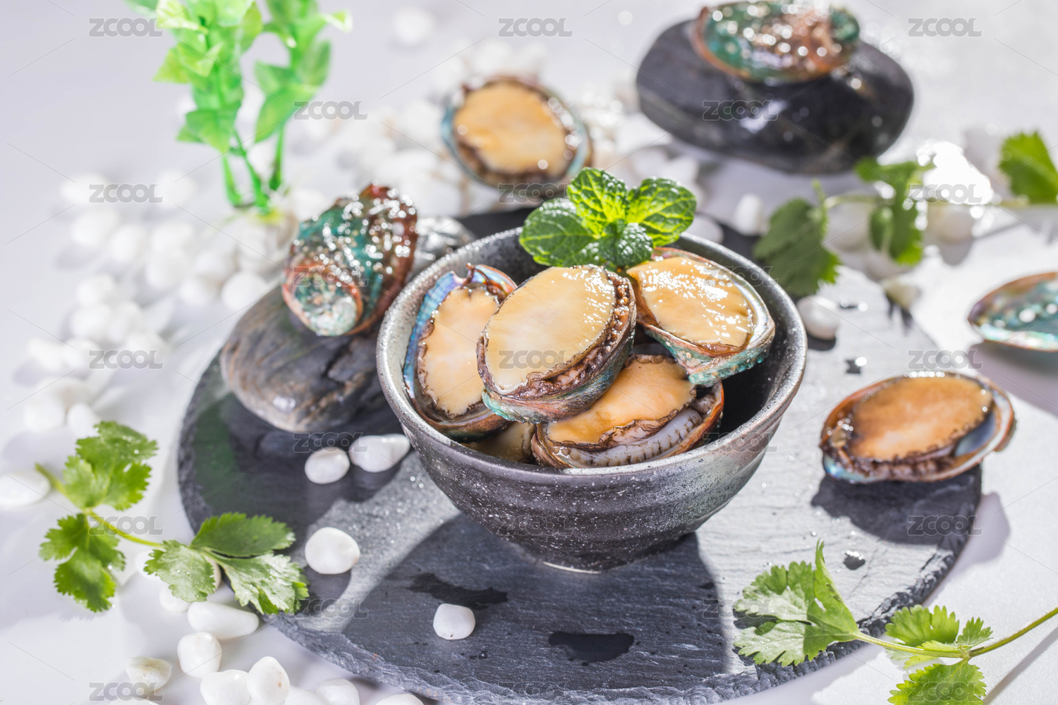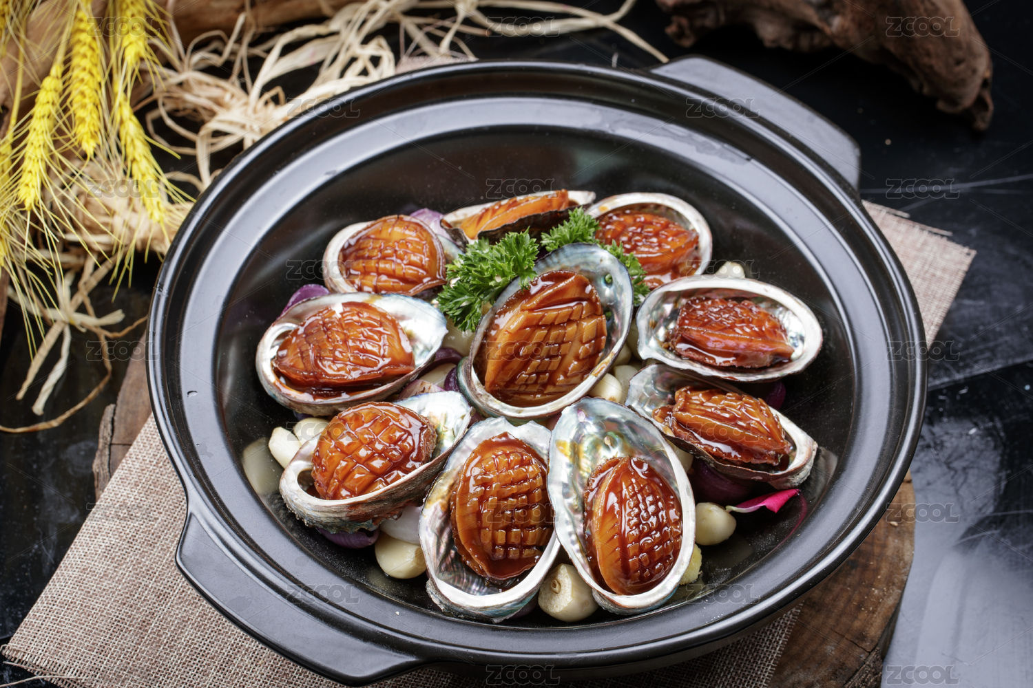 蒜焗砂鍋鮮鮑魚擺放在麻布墊子上