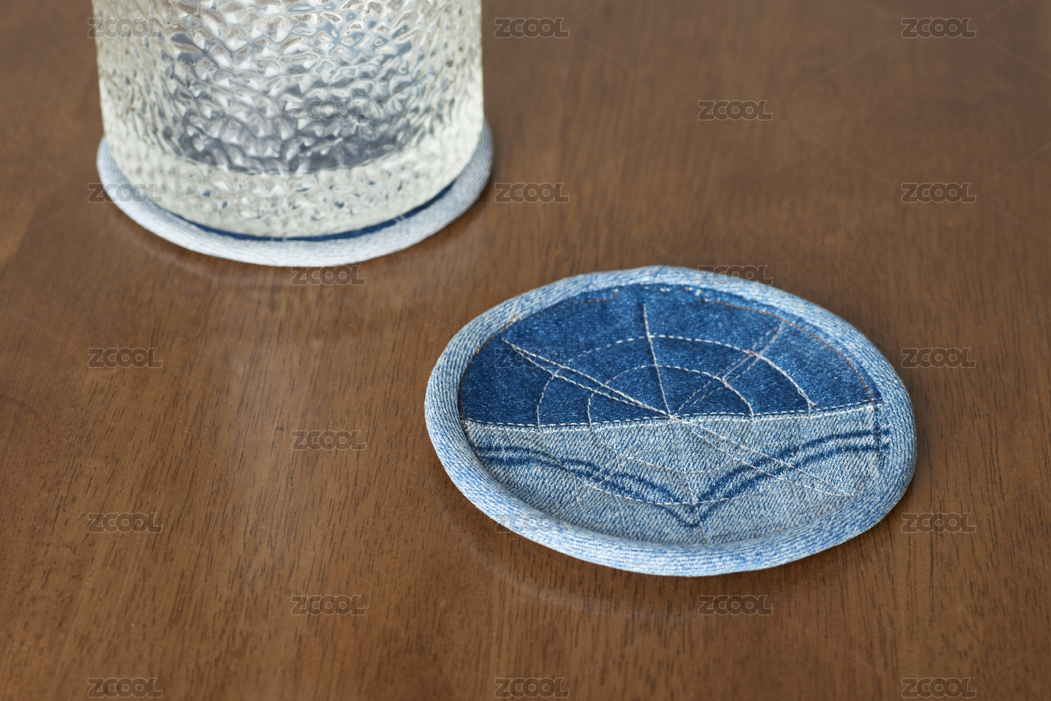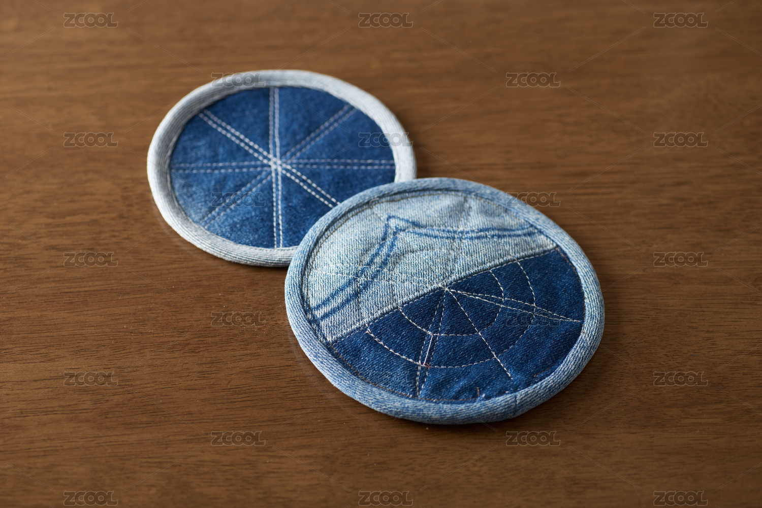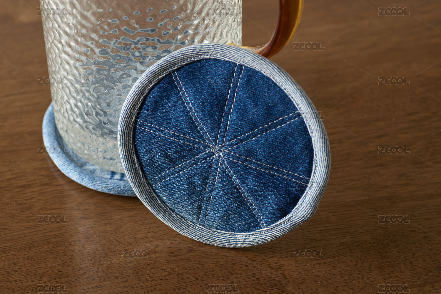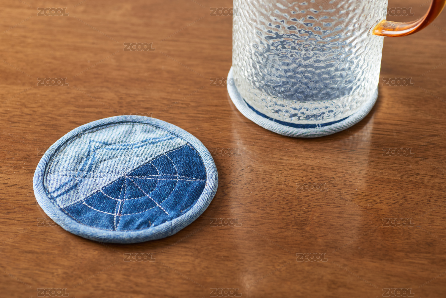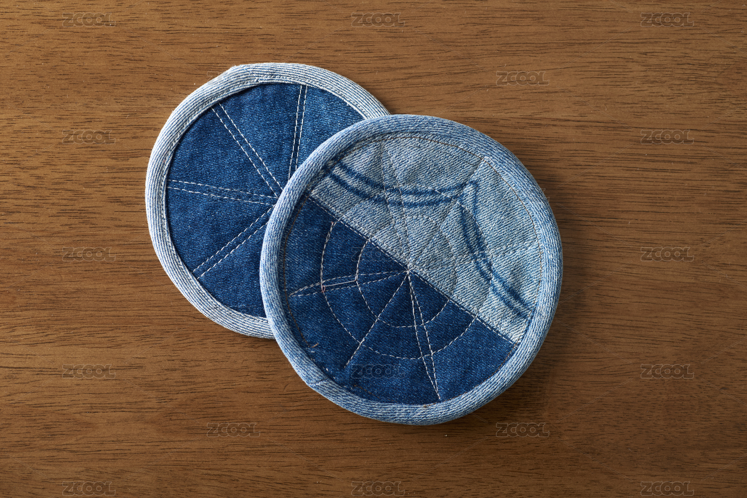 暗調(diào)的皮質(zhì)藍色背景上放著一個木質(zhì)杯墊