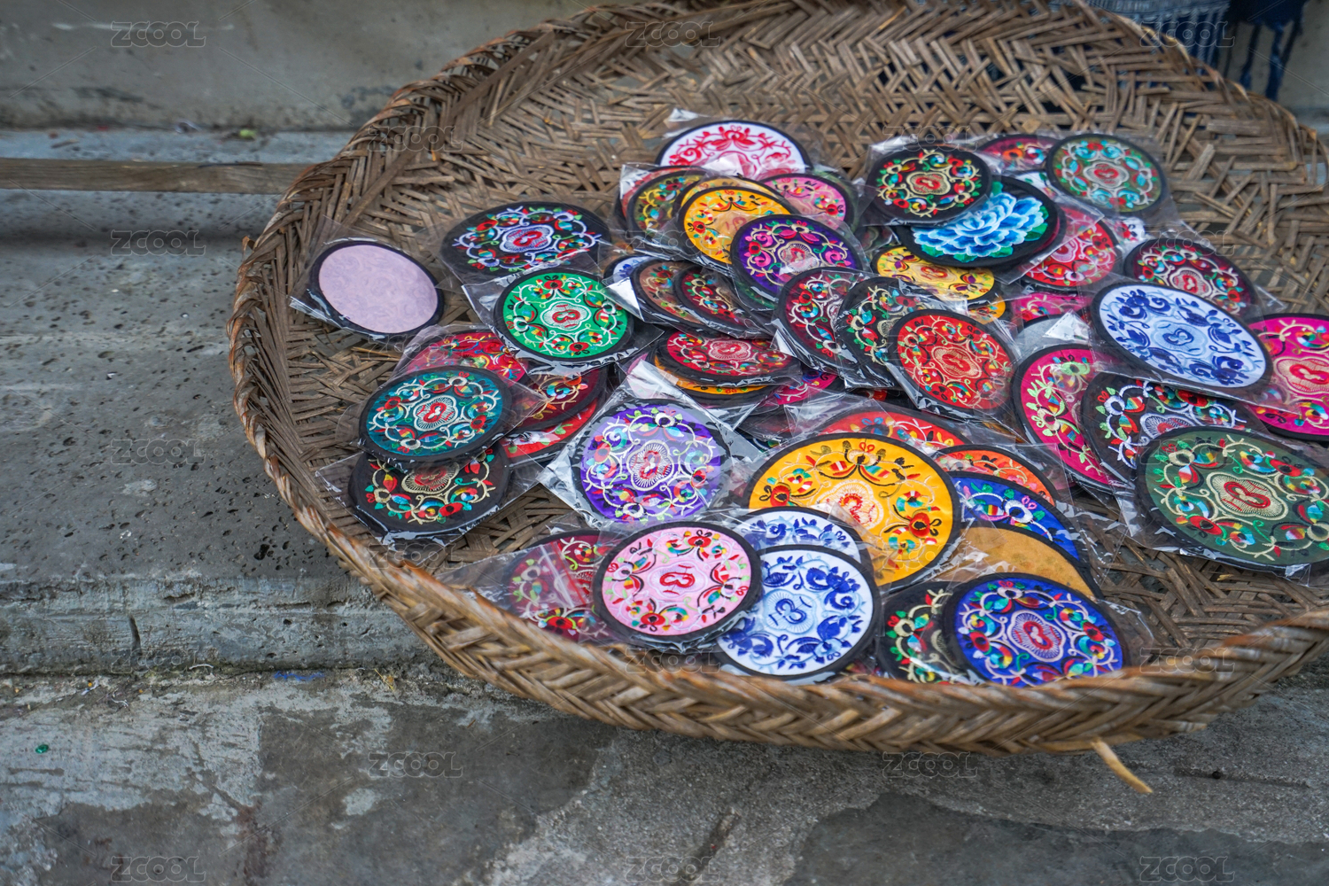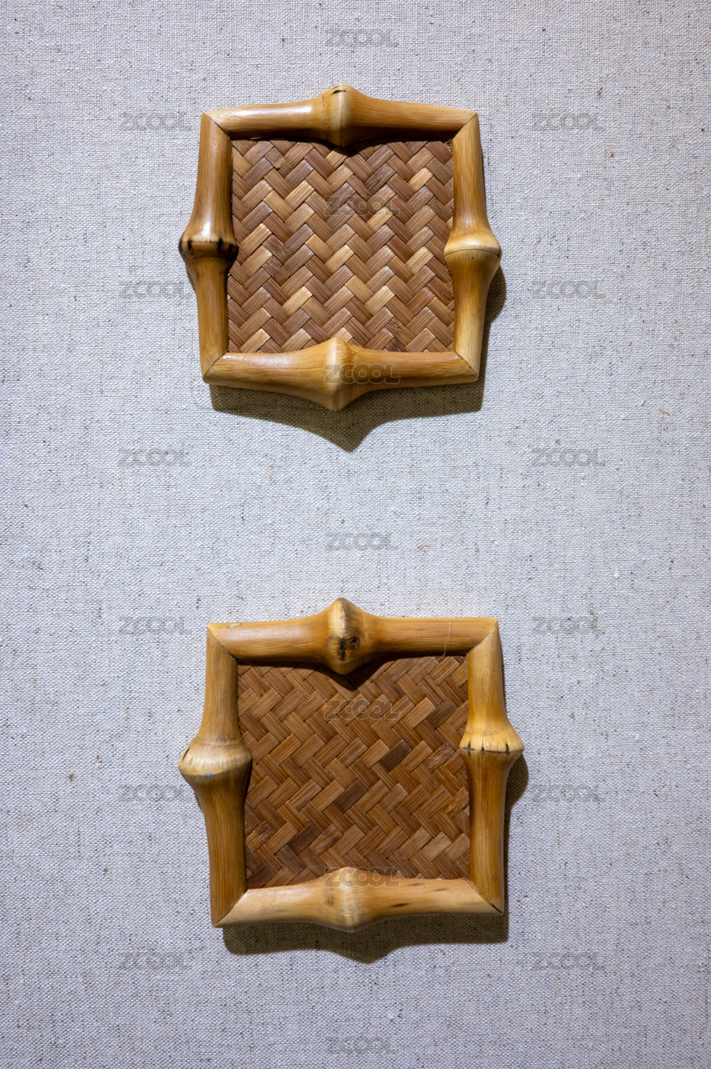 幾個隨意擺放的竹藝編制方形茶杯墊子