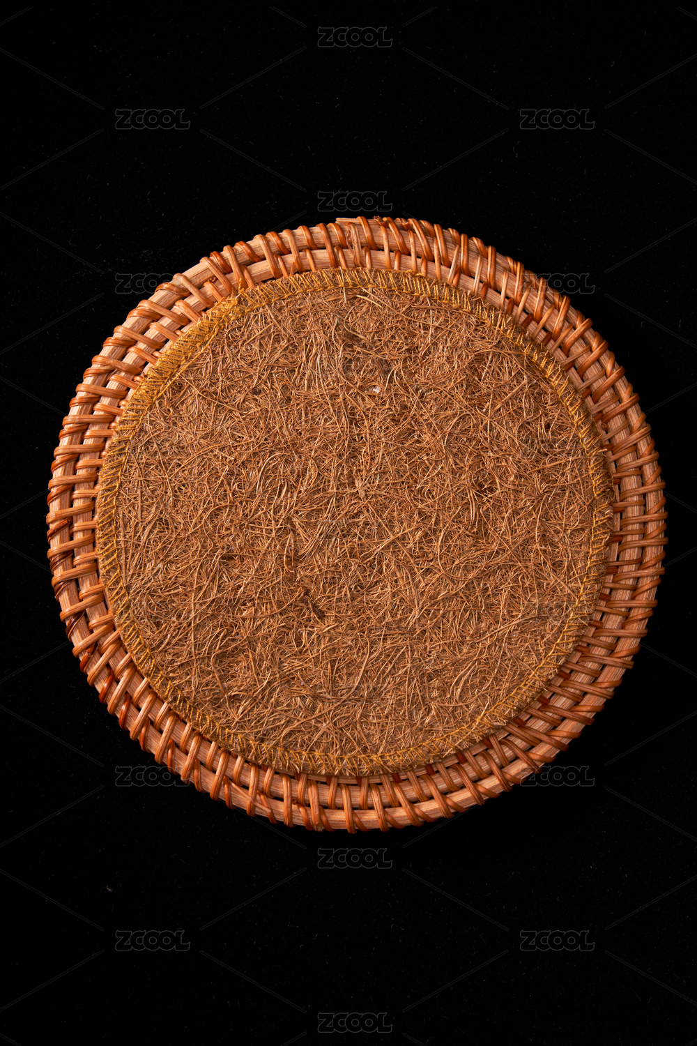 黑色背景下的棕絲杯壺墊,餐具墊子