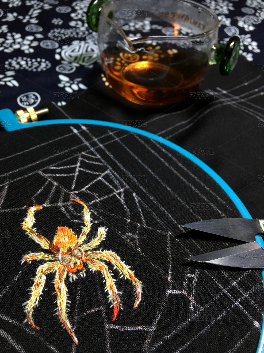 原創(chuàng)手工刺繡杯墊:蜘蛛與網(wǎng)