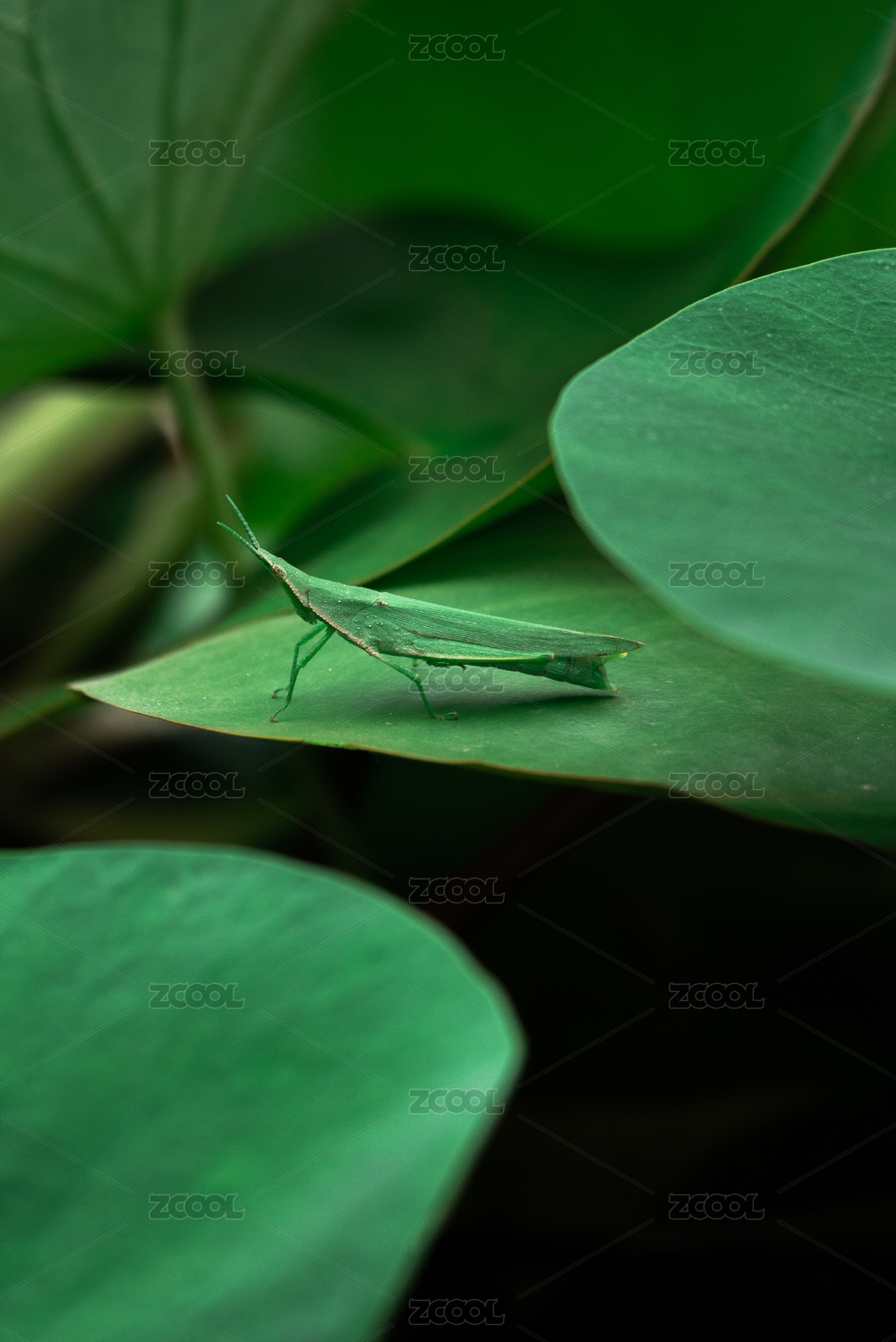 荷葉上的綠蚱蜢