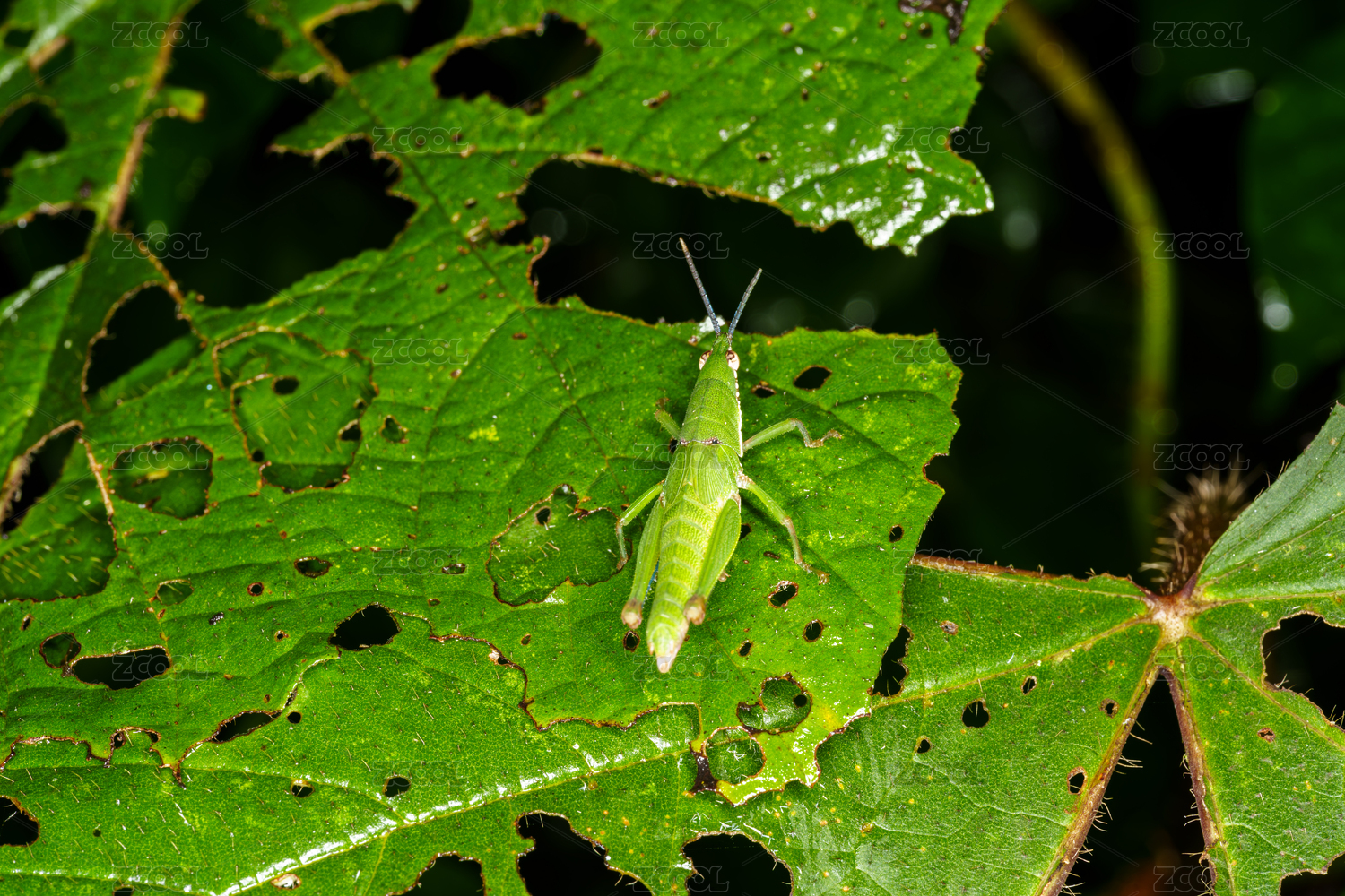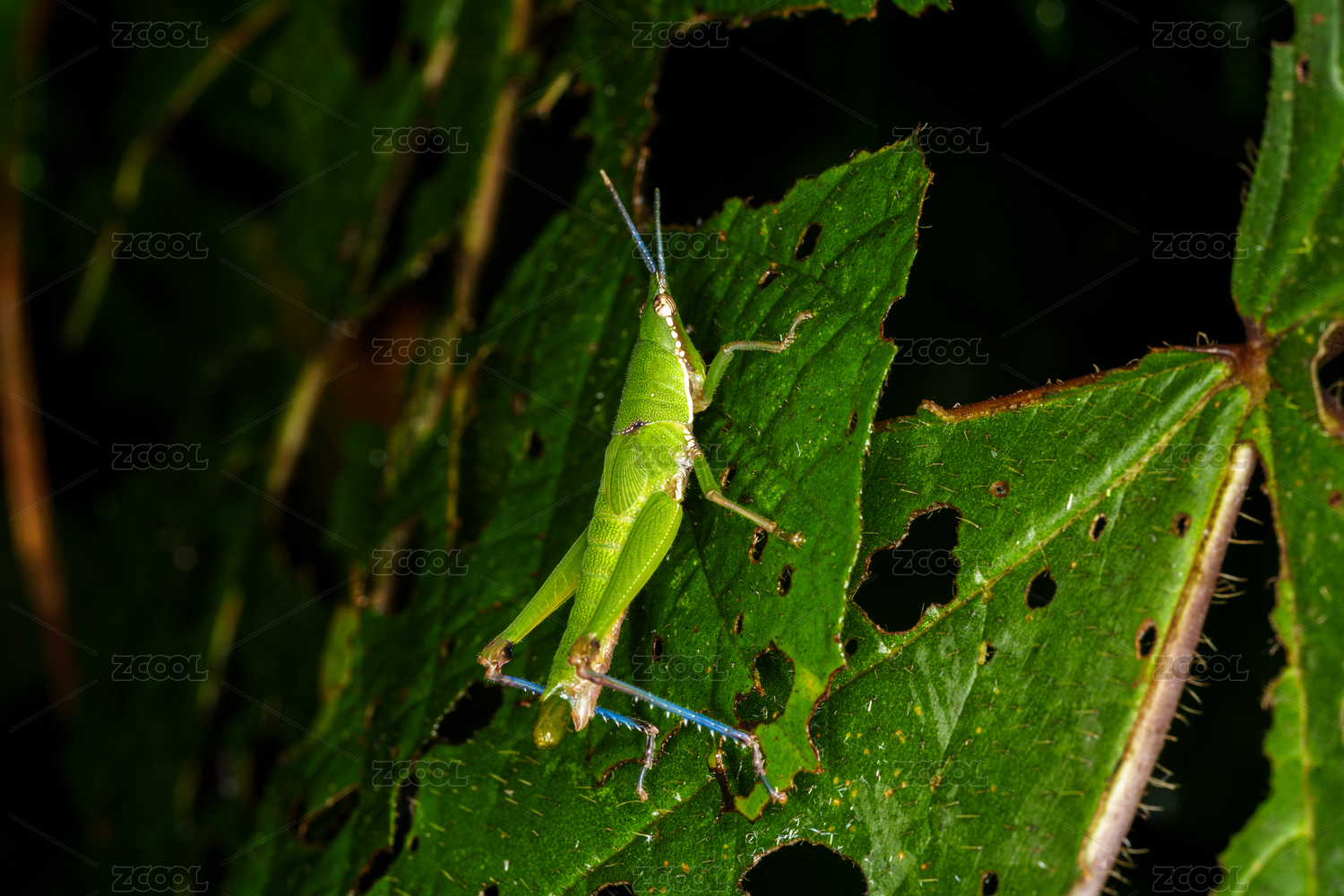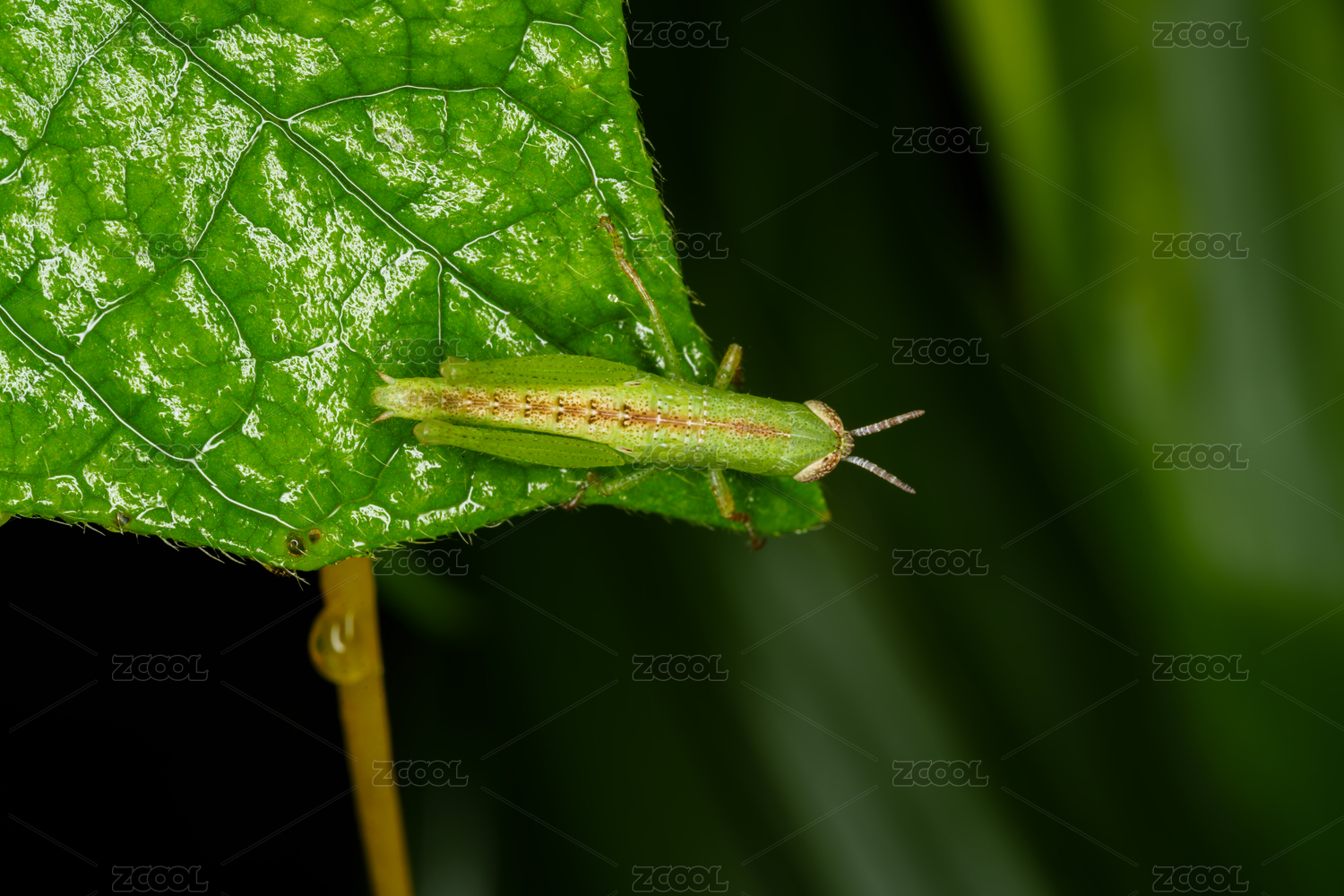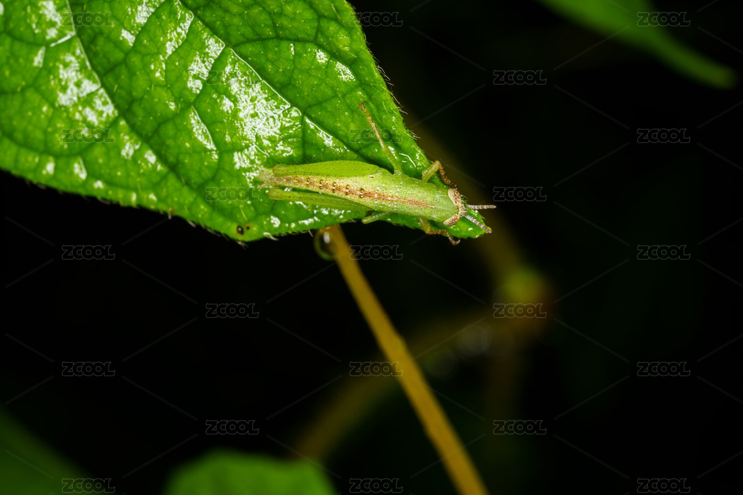綠葉上的綠色小蚱蜢