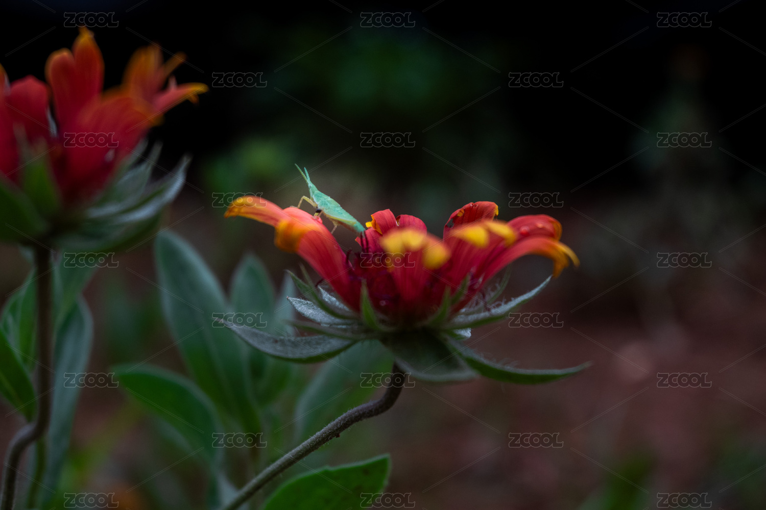 紅色花朵上的蚱蜢