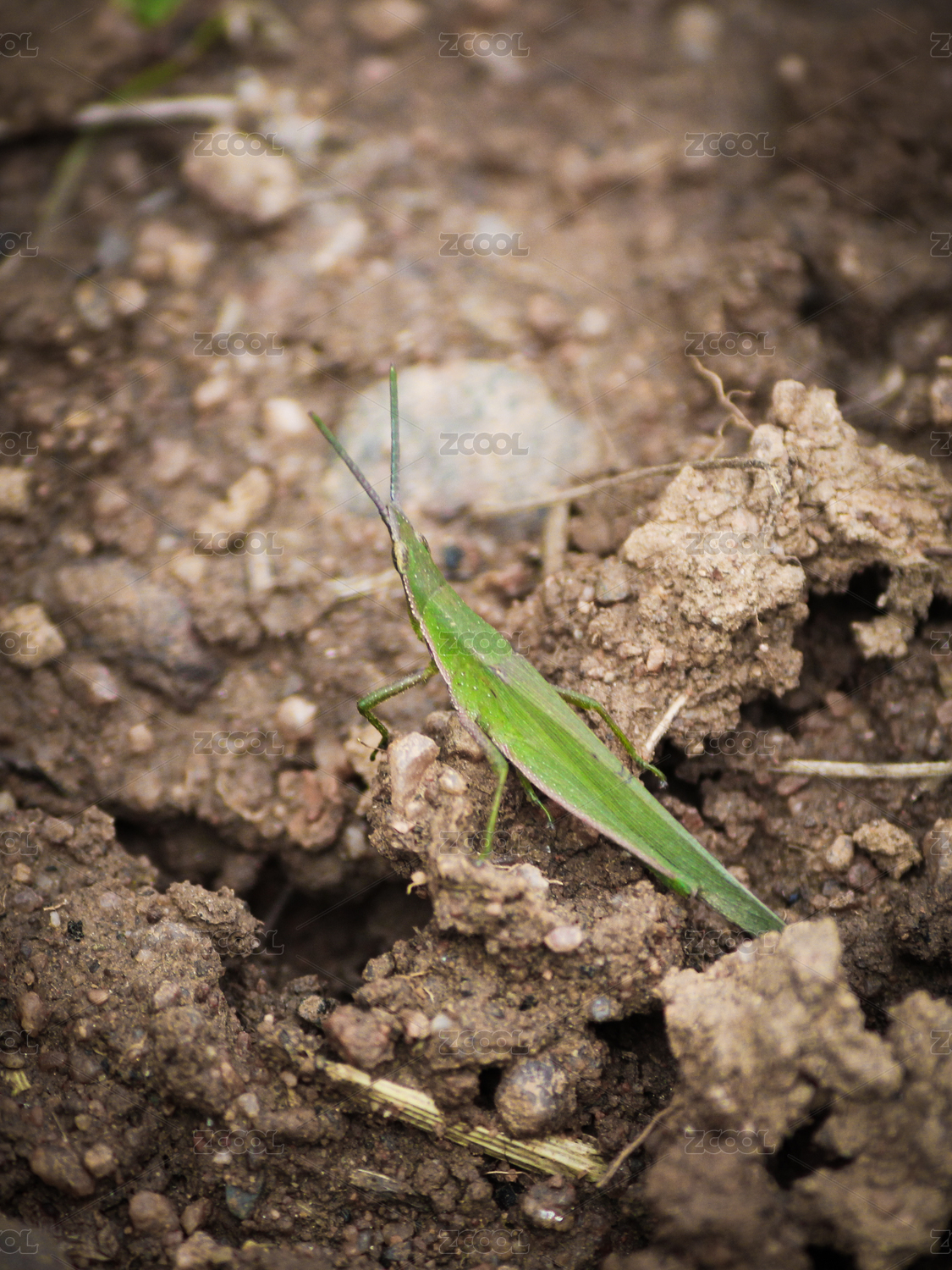 泥土上的綠色蚱蜢特寫
