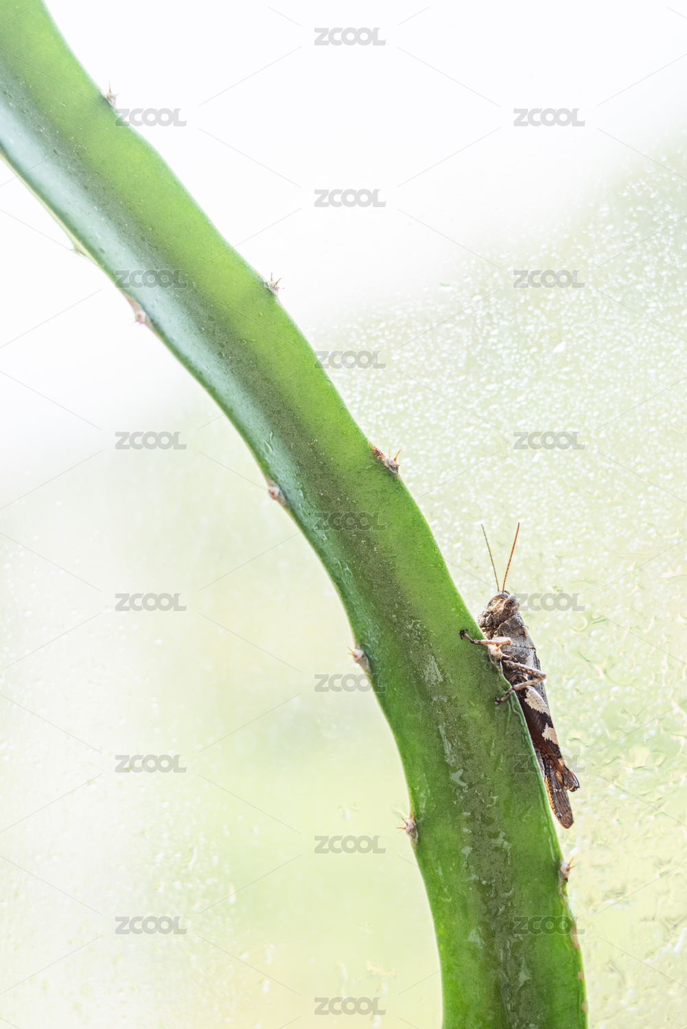 一只趴在火龍果苗上的蚱蜢