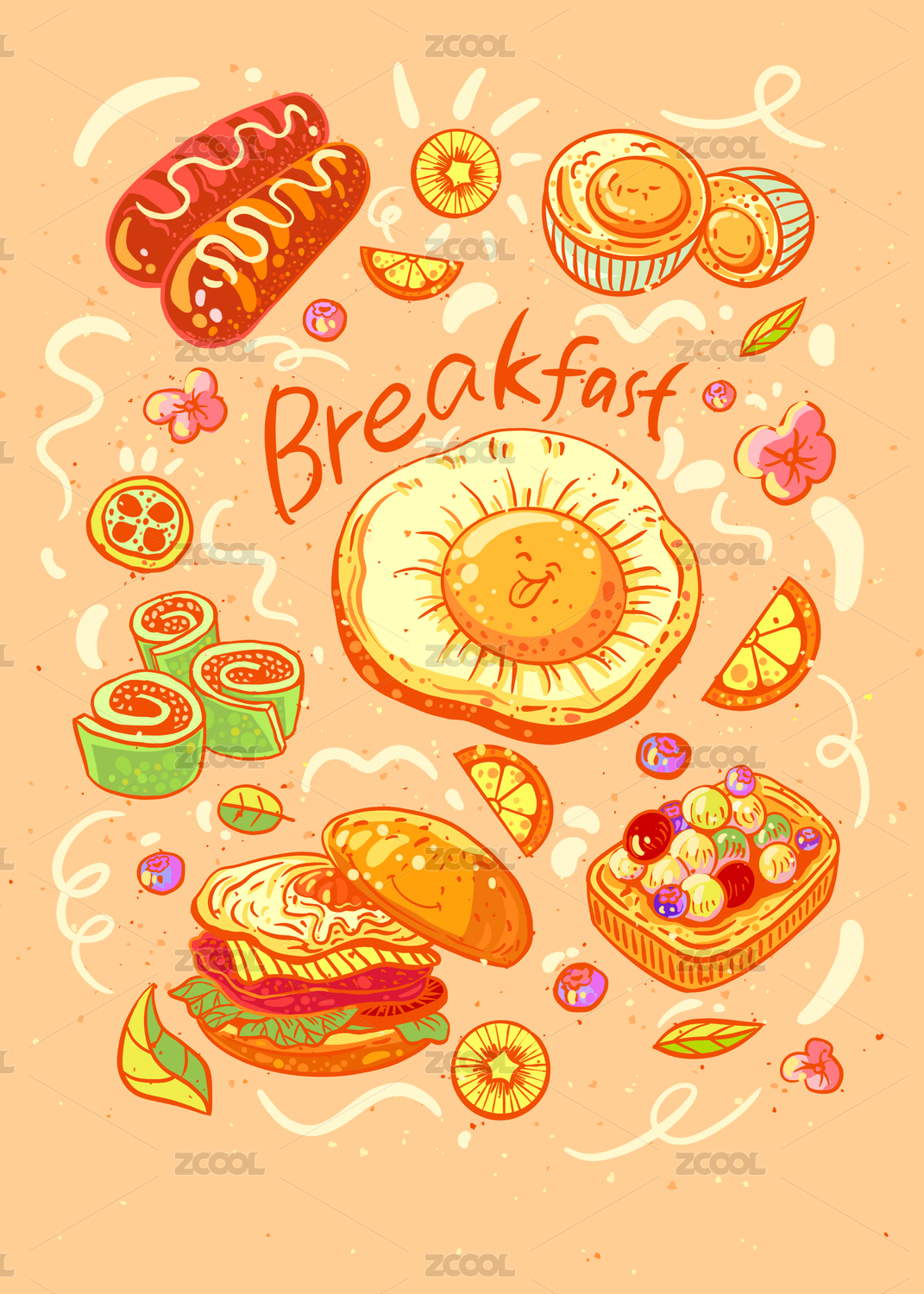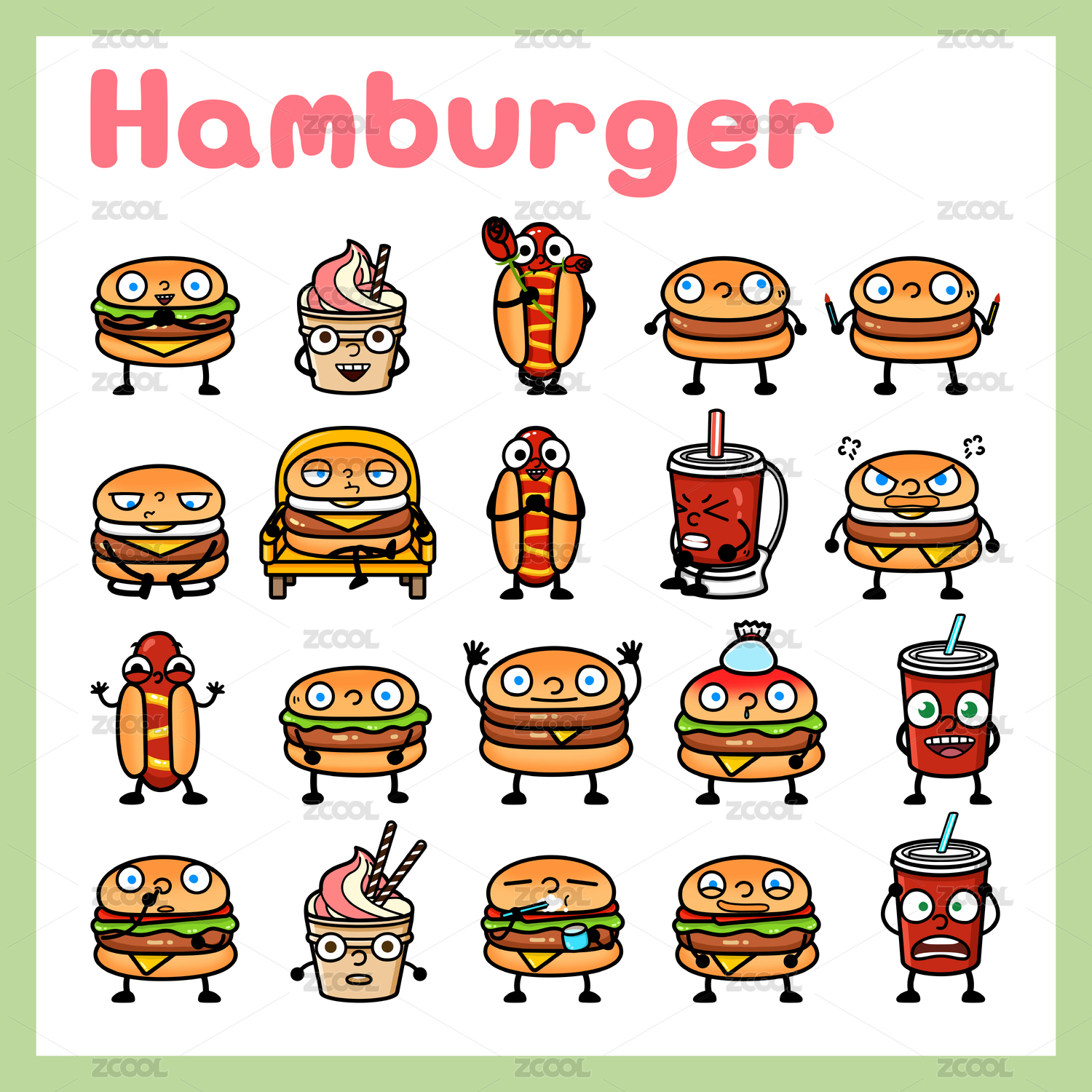 小清新風(fēng)格漢堡可樂薯條插畫食物元素