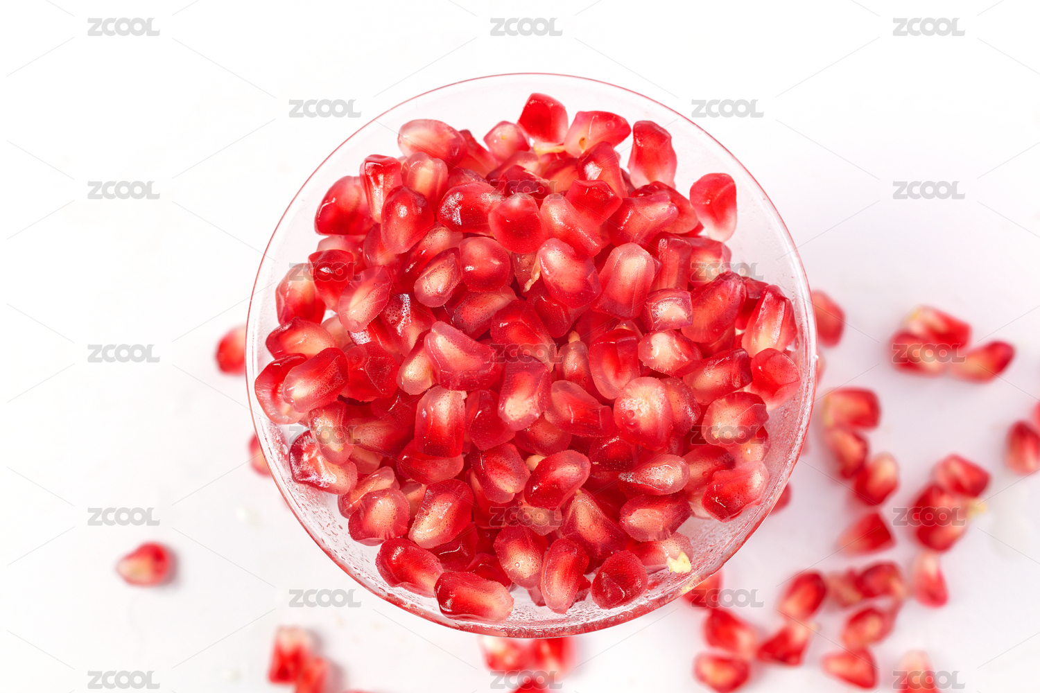 白色背景下分散的石榴籽