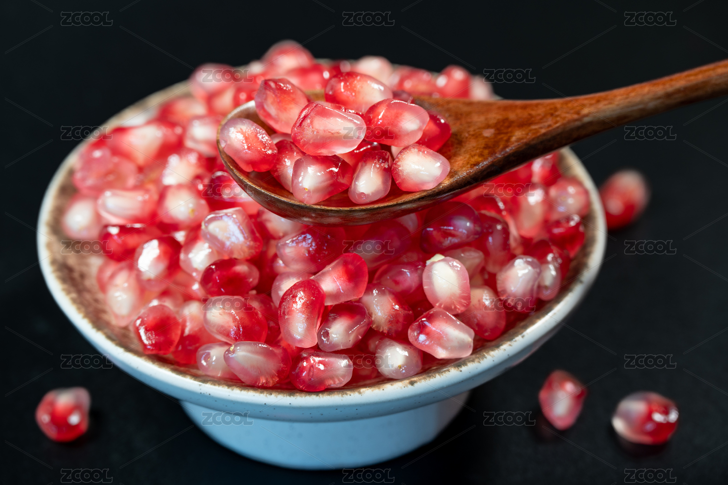 白背景木勺石榴籽