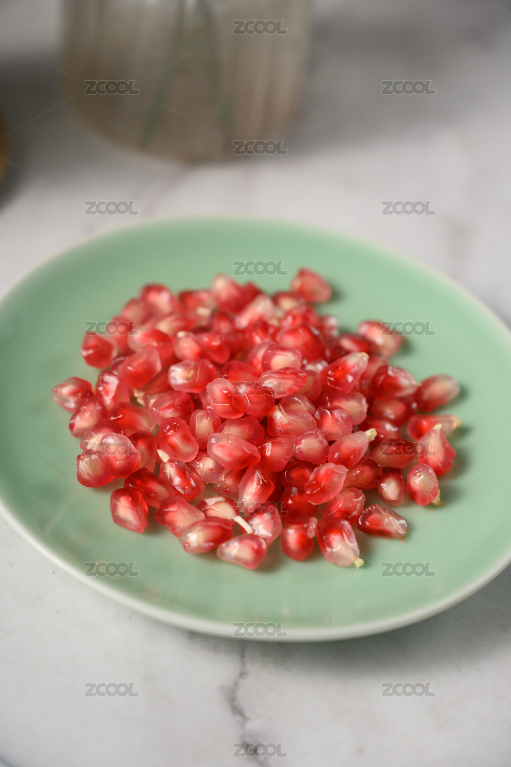晶瑩剔透的玻璃器皿裝石榴籽