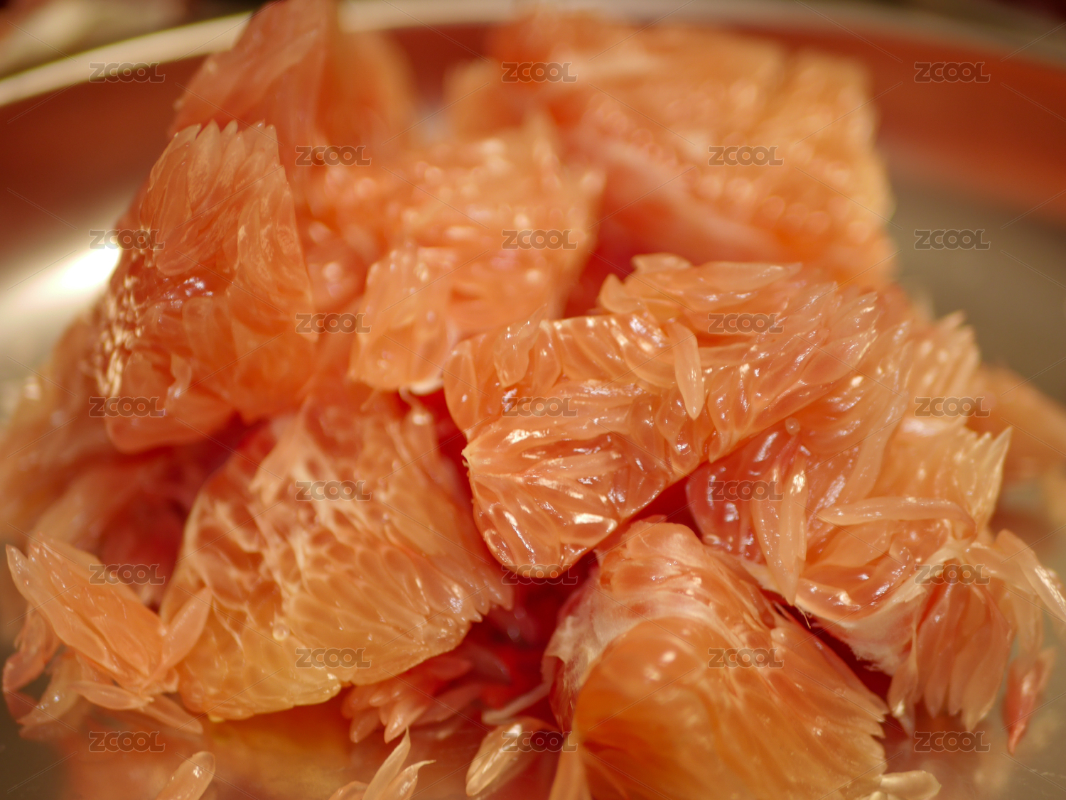 盤中的新鮮柚子柚子果肉