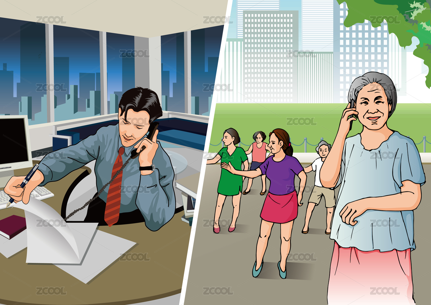 卡通電話客服女孩插畫