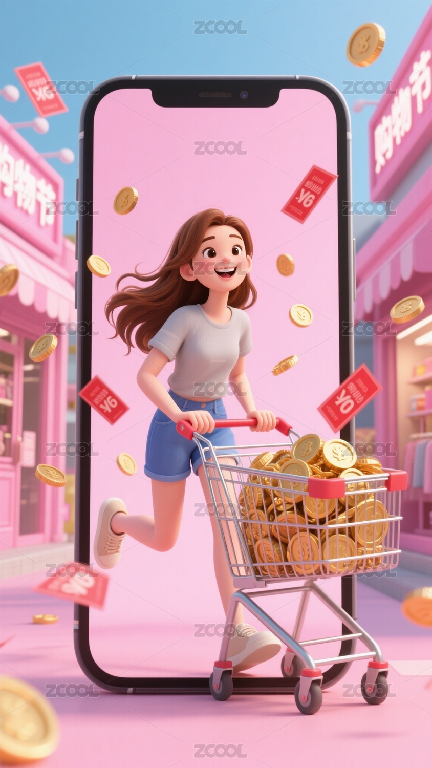3D卡通電商購物場景插畫