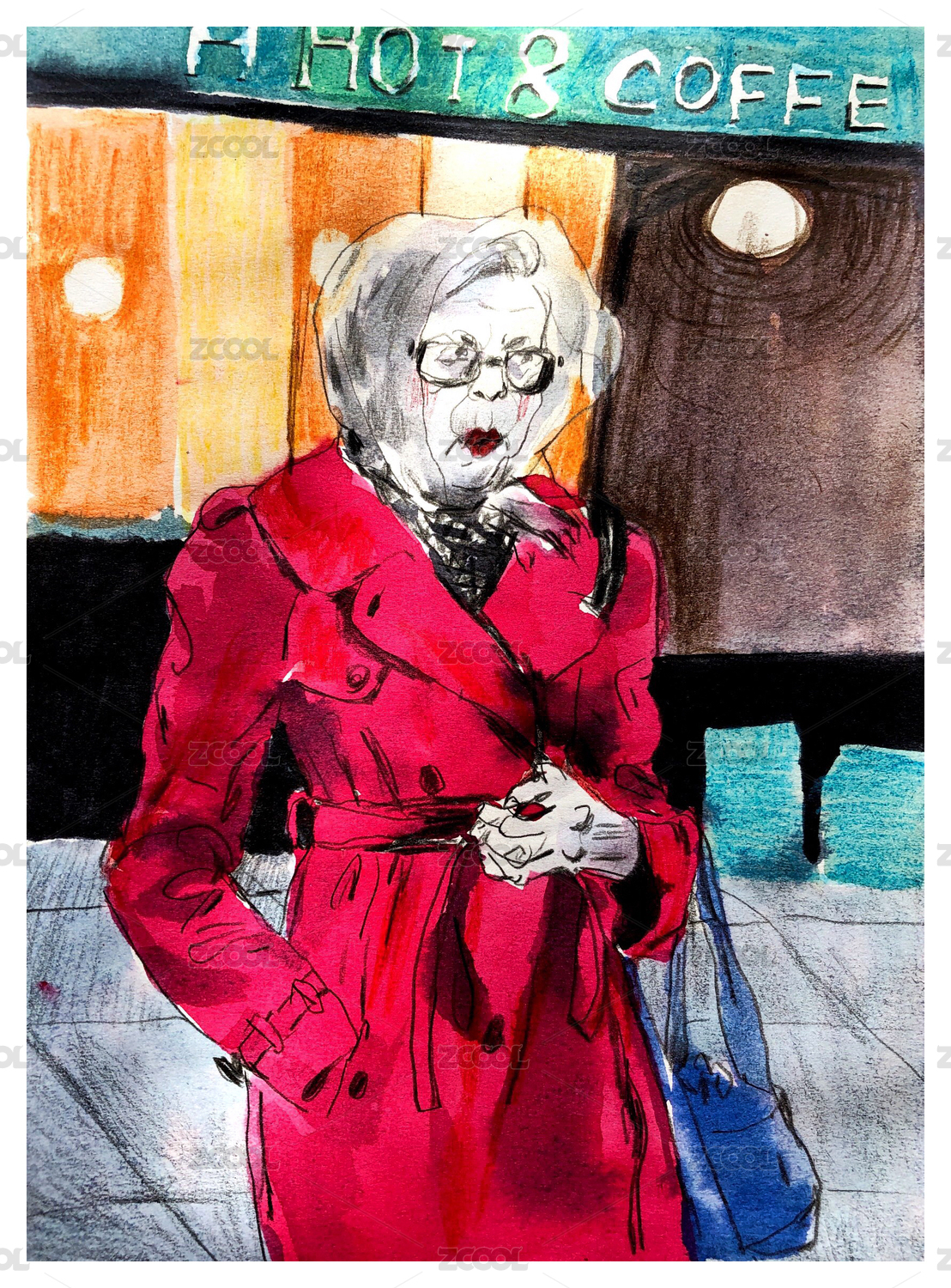 街頭咖啡館前的時(shí)髦老婦人