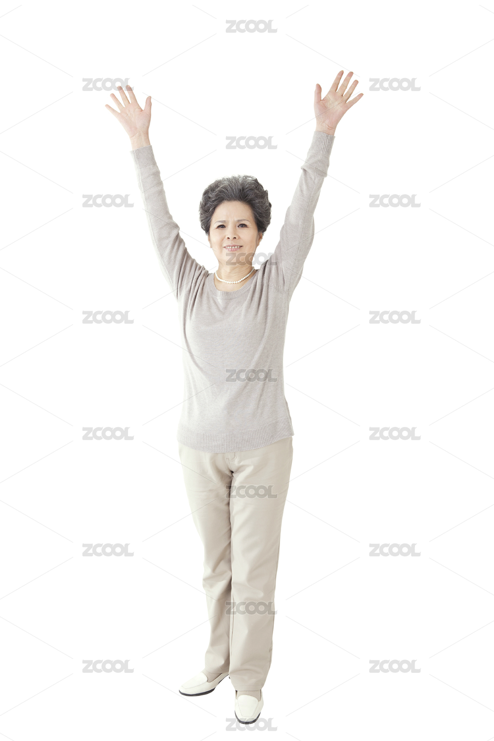 老婦人舉起雙手
