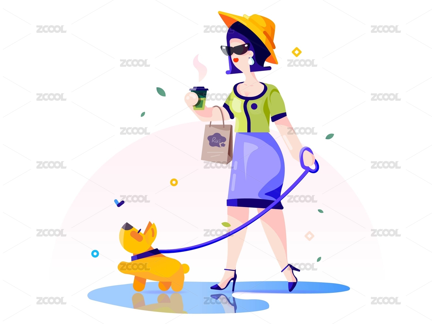 雨后清晨遛狗的貴婦