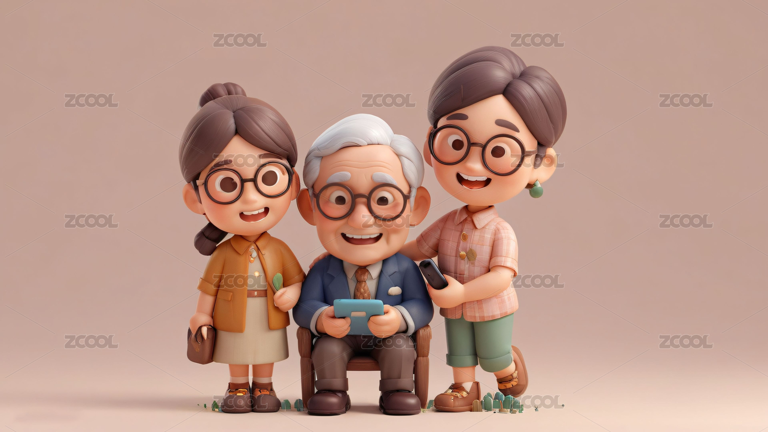 重陽(yáng)節(jié)老人黏土卡通插畫(huà)