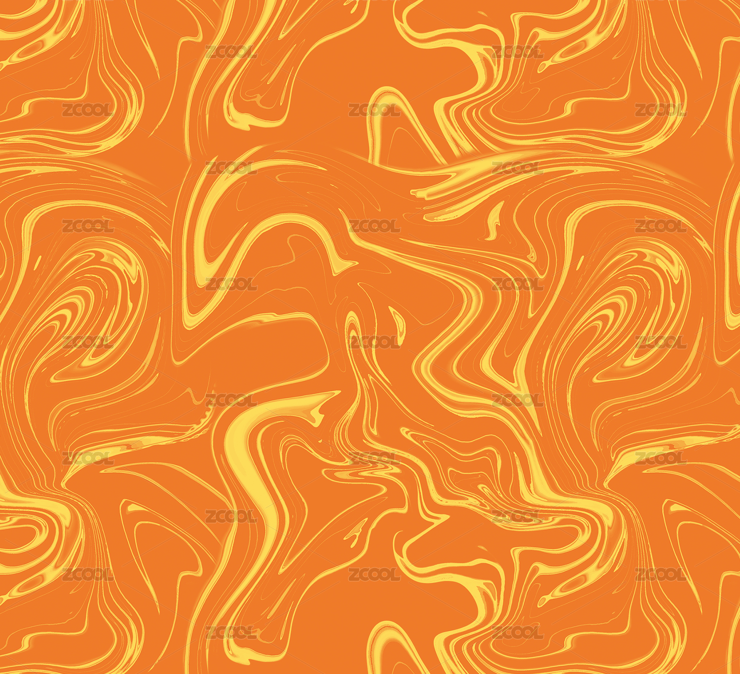 橘色曲線交織組成得抽象水波紋圖案