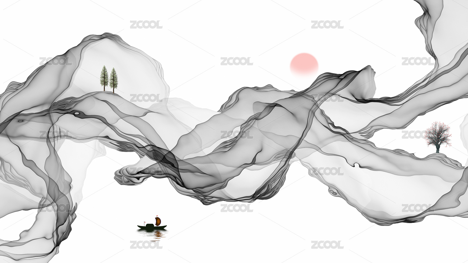 黑白線條藝術(shù)山水抽象水墨畫