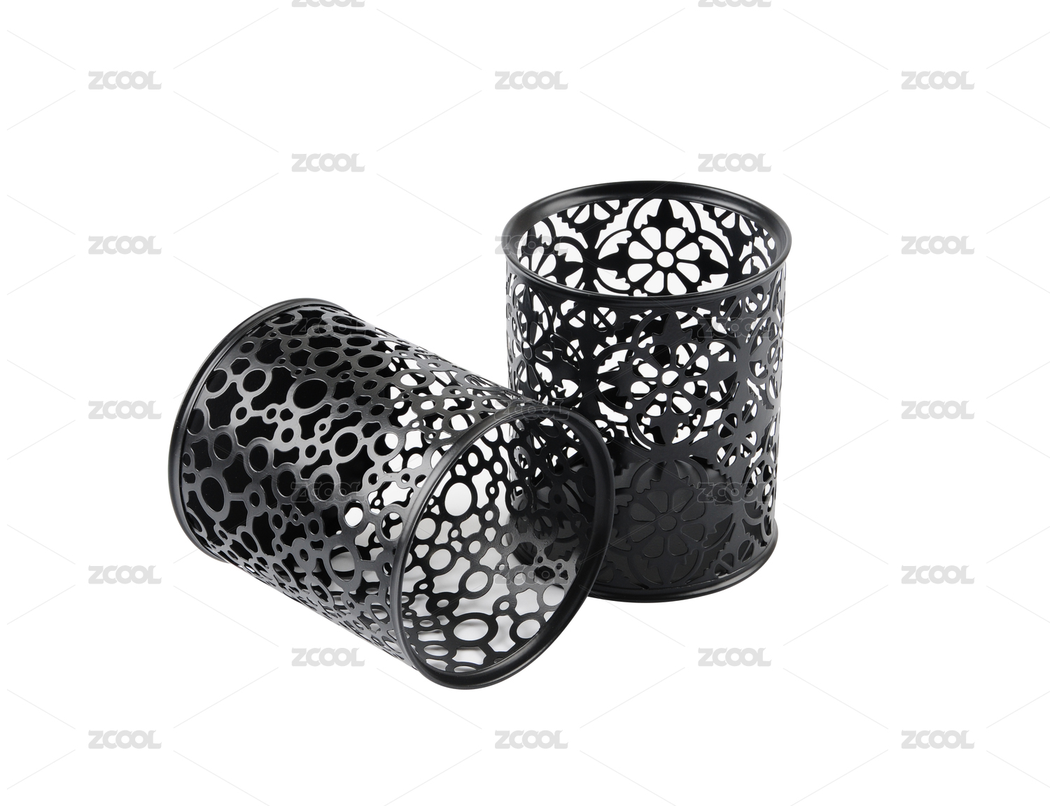 白色背景中的黑色鐵藝鏤空時尚筆筒