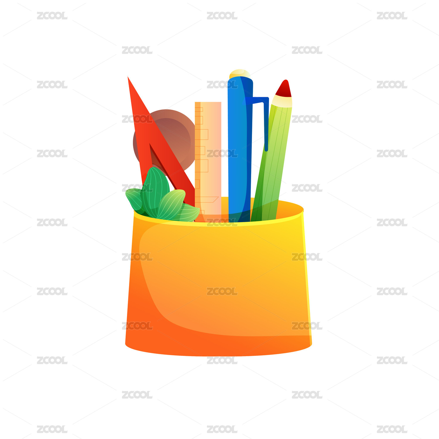 扁平風(fēng)學(xué)習(xí)用具筆筒