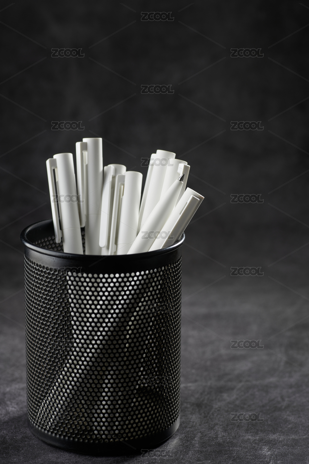 一只黑色烤漆金屬網(wǎng)格筆筒