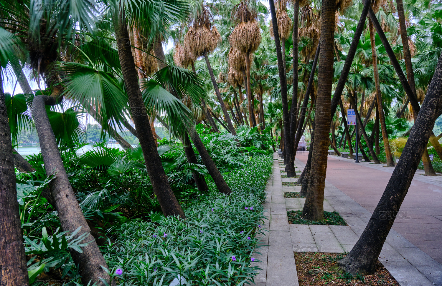 中國(guó)廣州流花湖公園棕櫚樹景觀