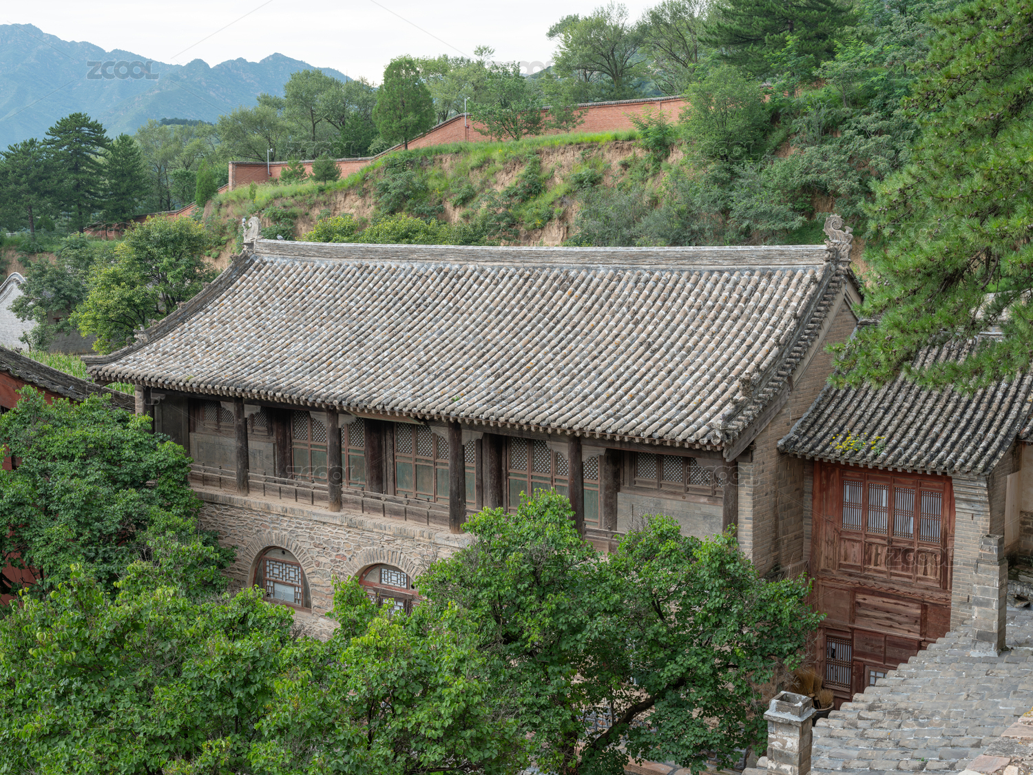 山西省忻州市五臺山古建筑佛光寺門臺階入口