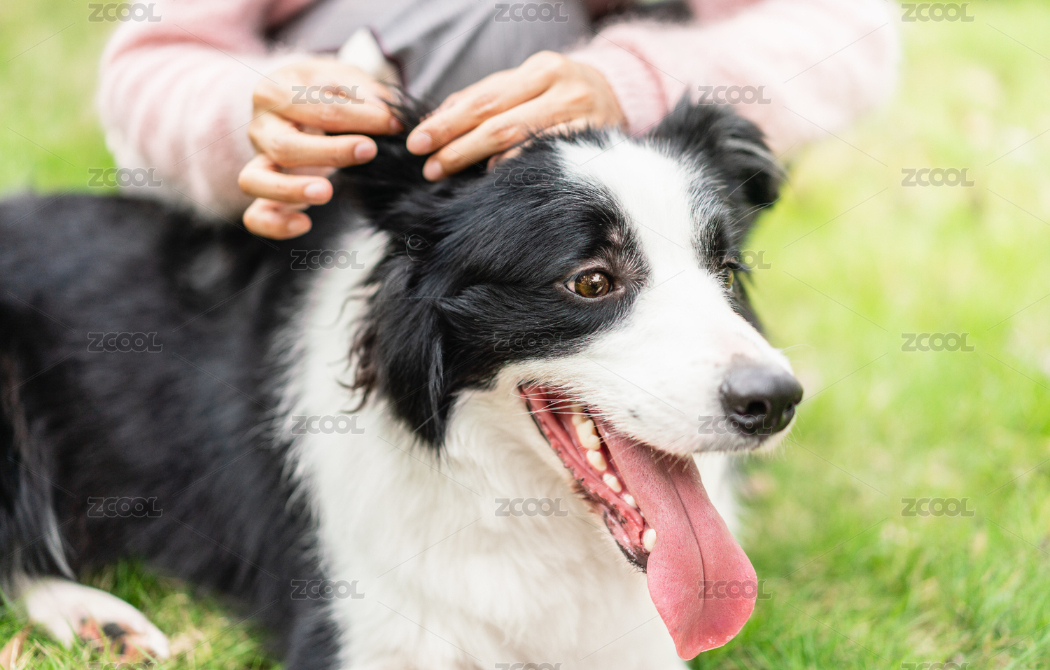 草地上的人與寵物