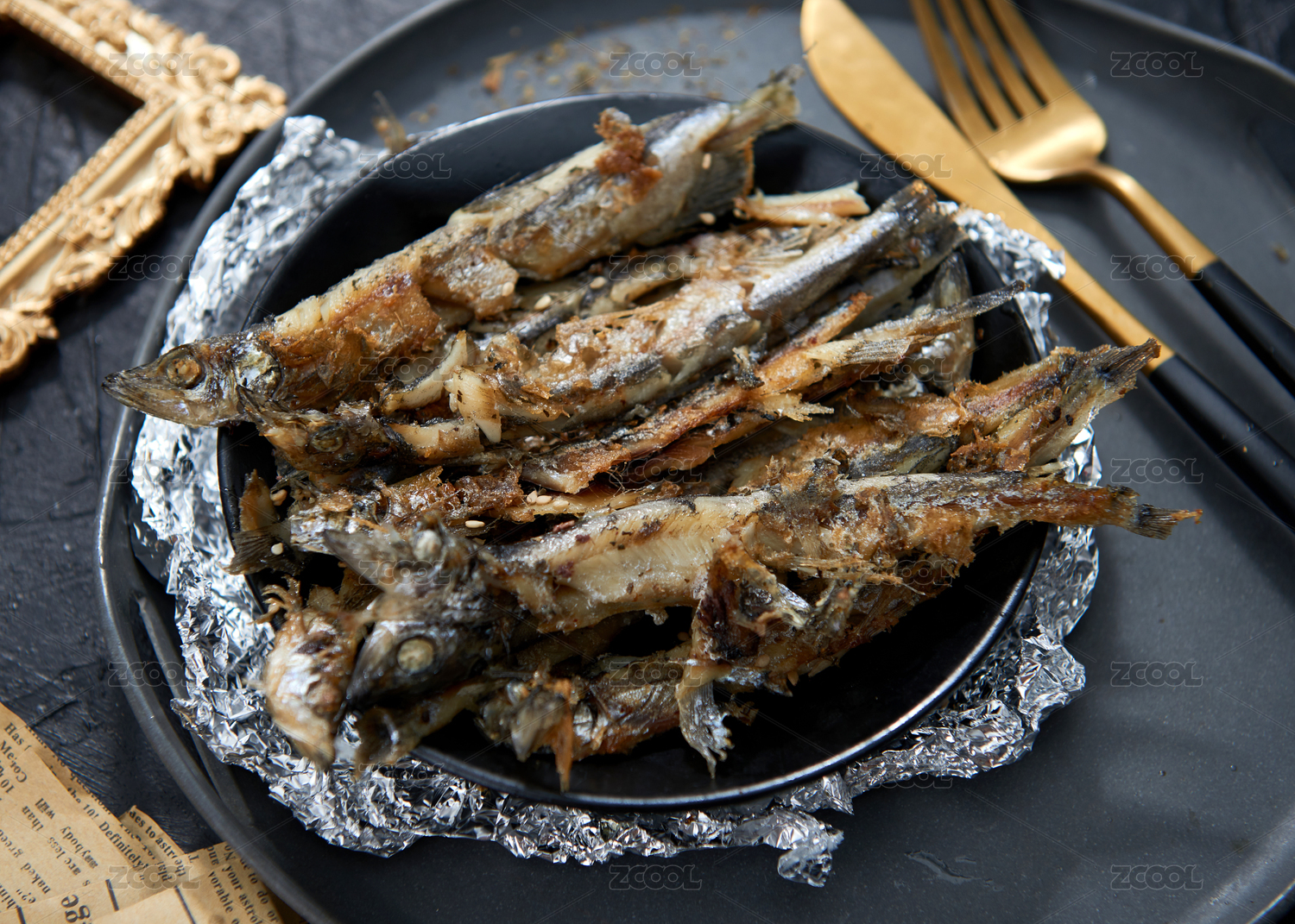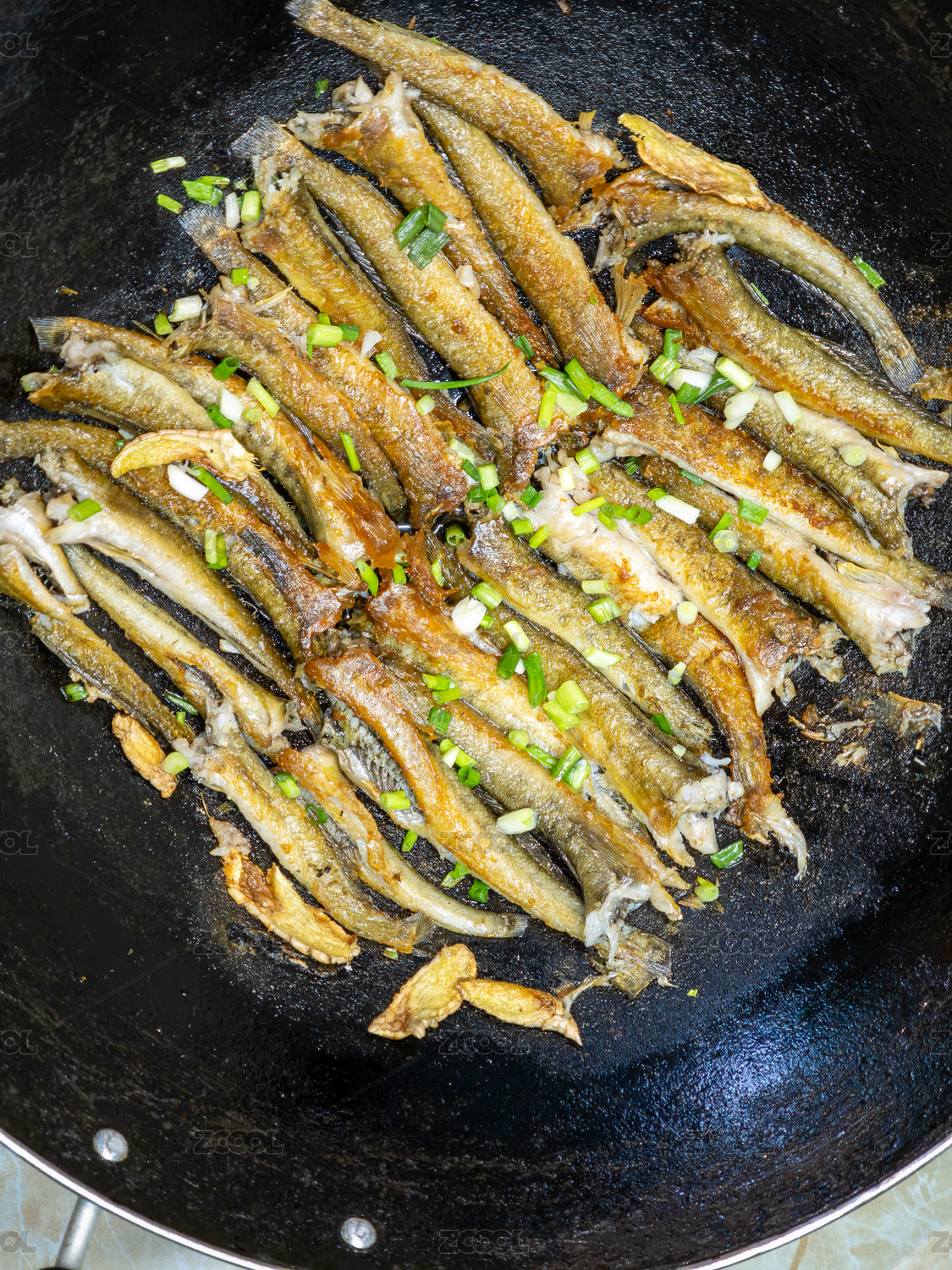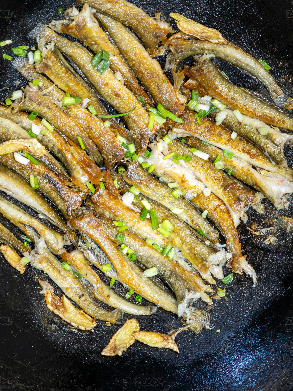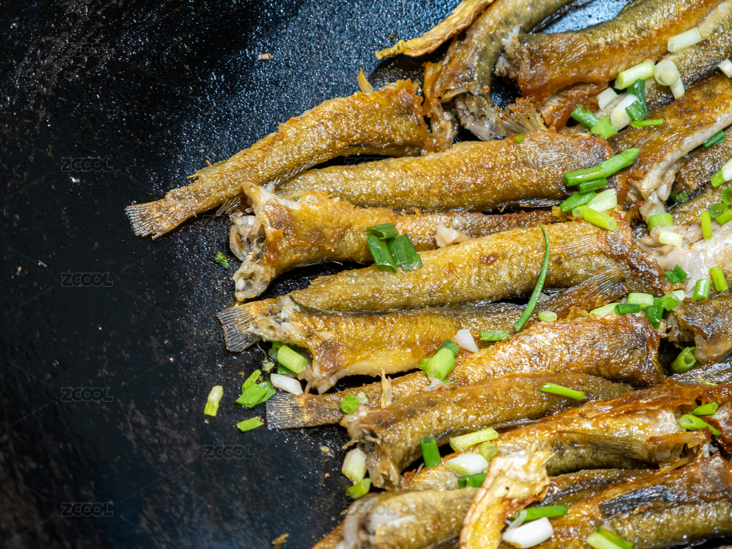中國傳統(tǒng)美食晚餐香煎小銀魚