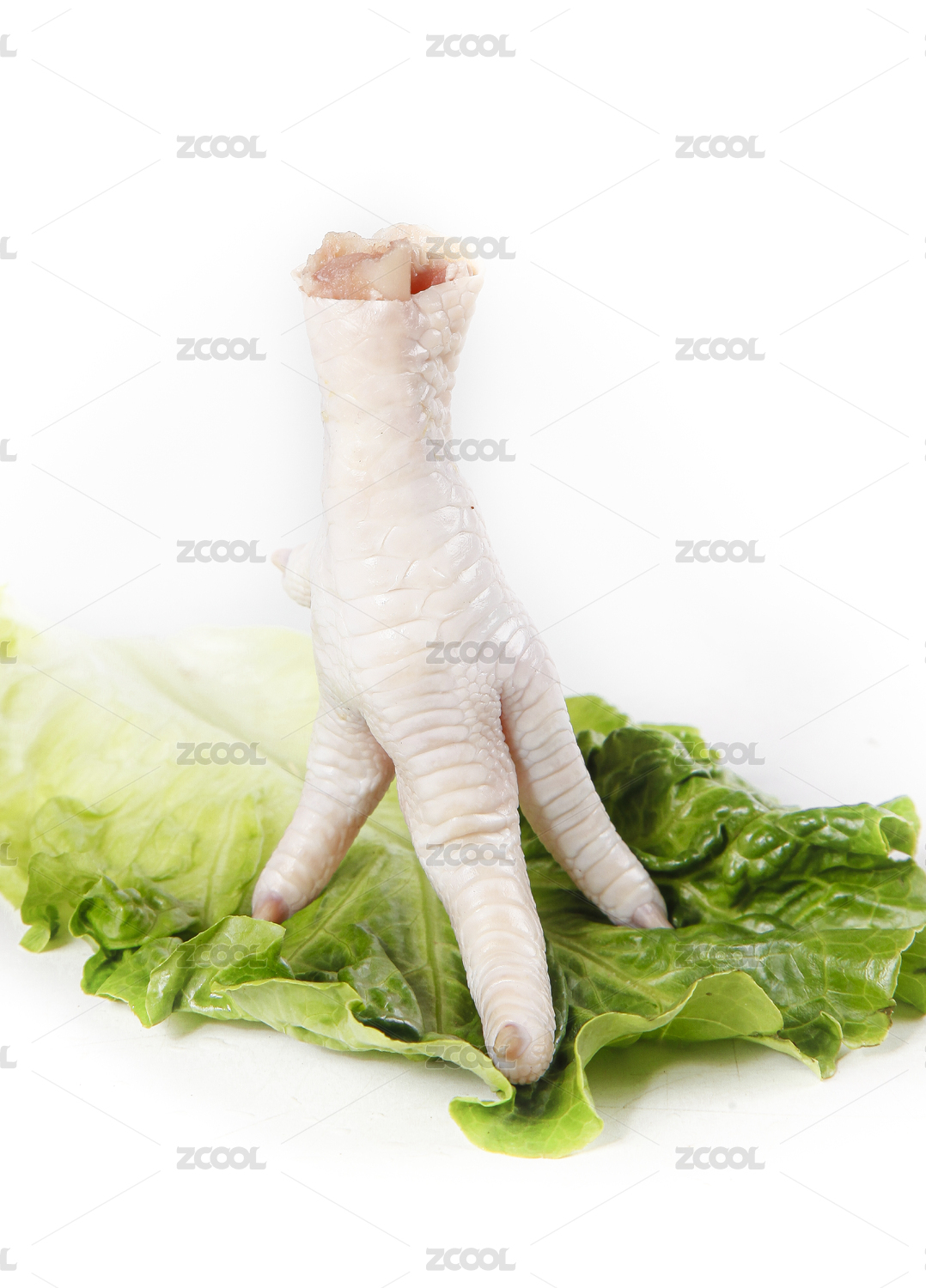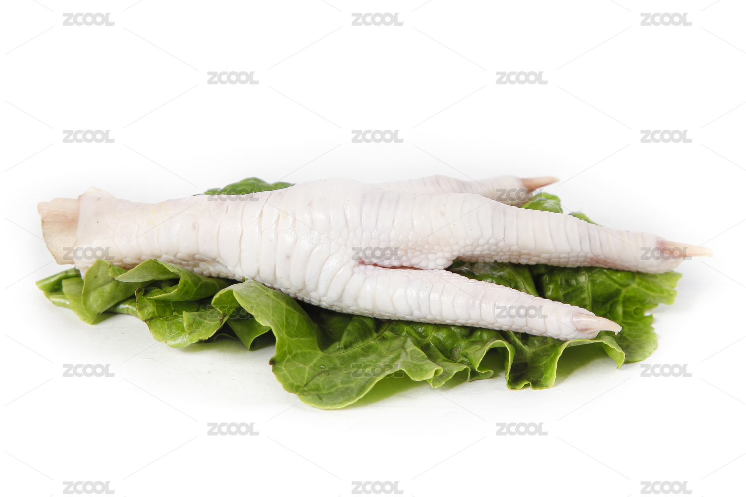白底菜葉子上放著雞爪子
