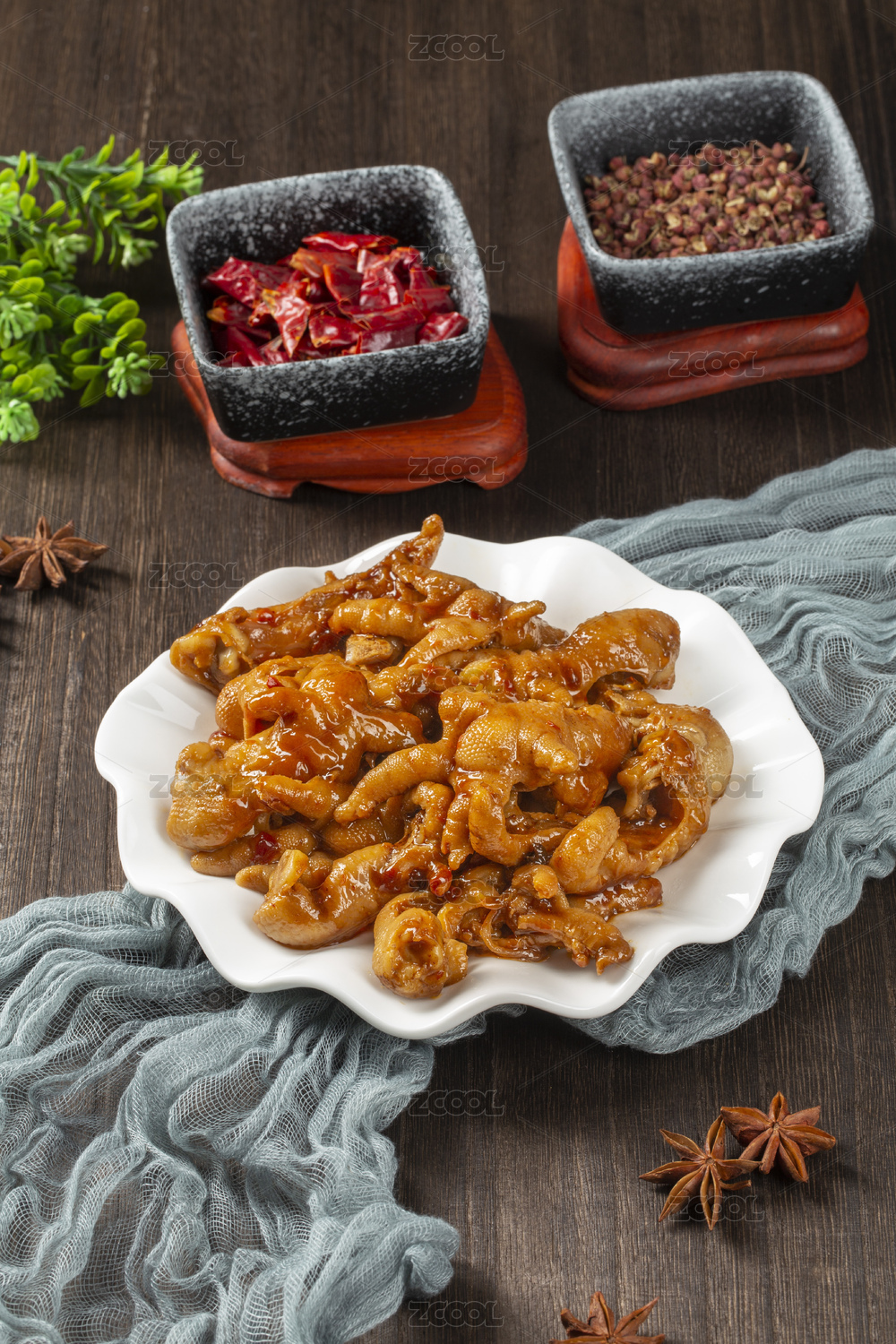 白底上放著一盤(pán)雞爪子