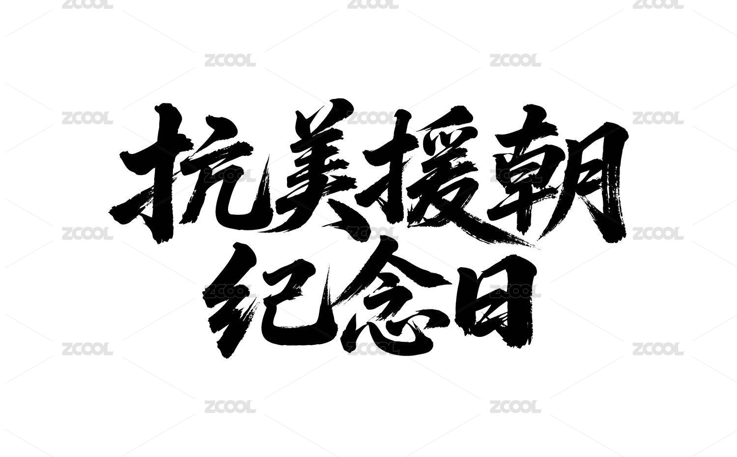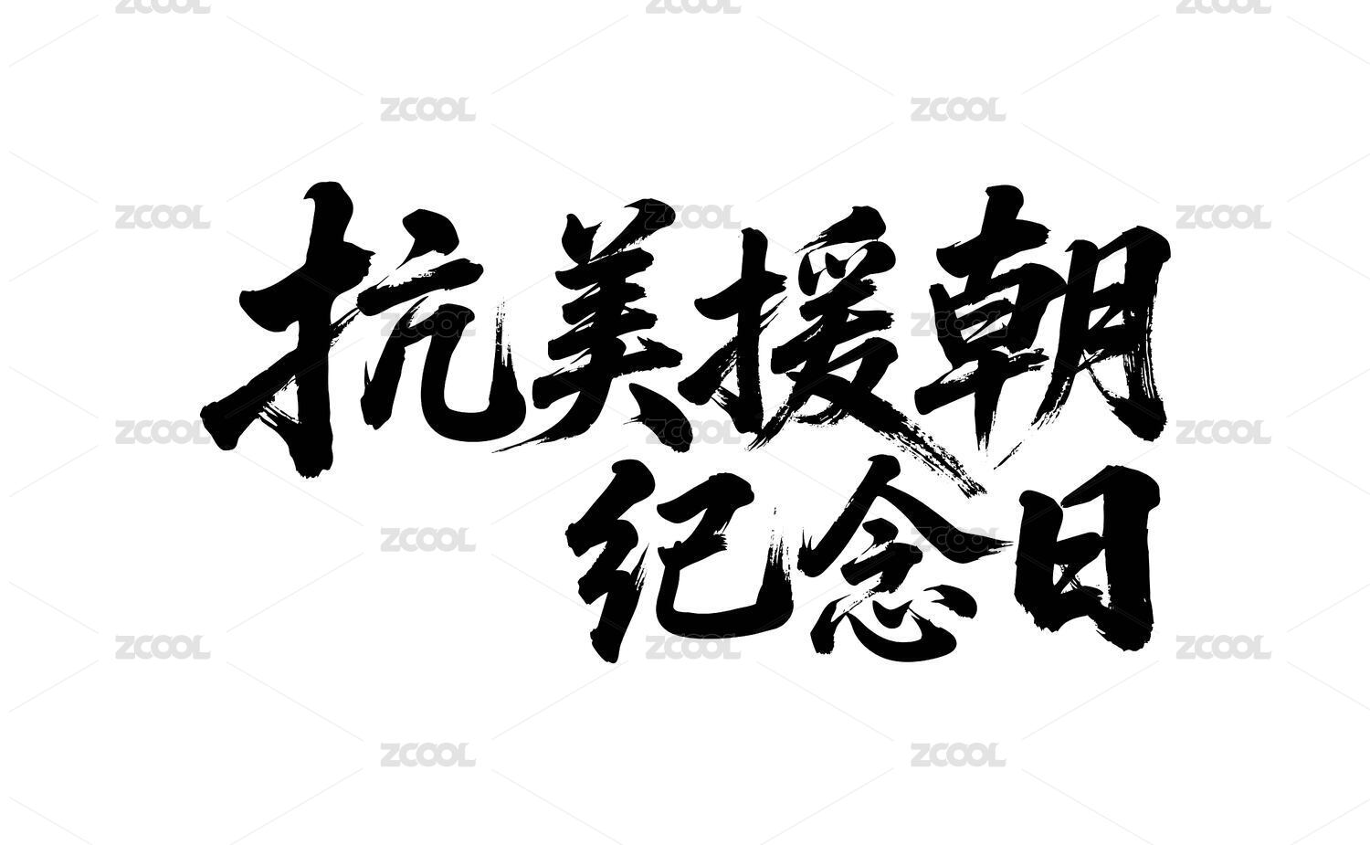 抗美援朝紀(jì)念日矢量書法手寫毛筆字