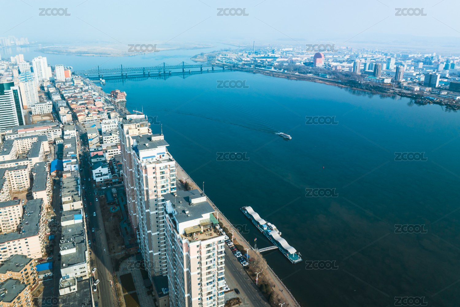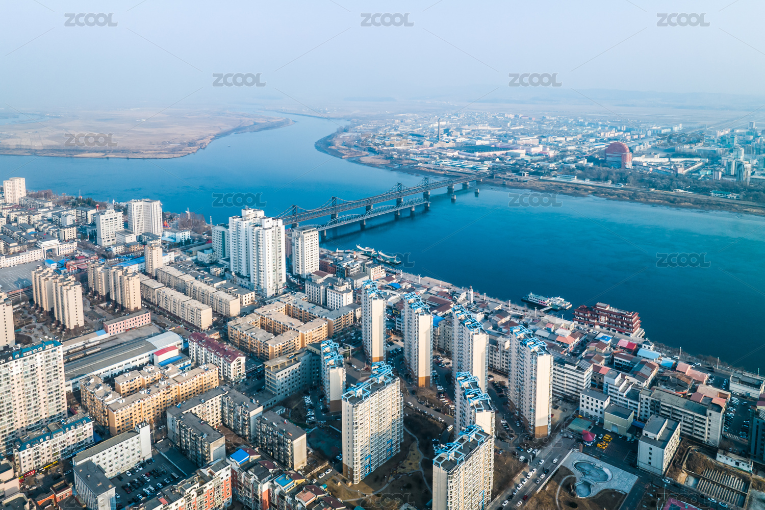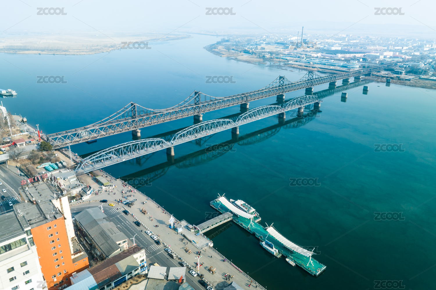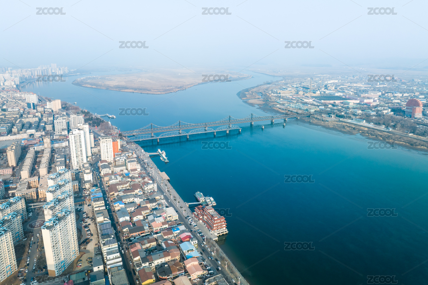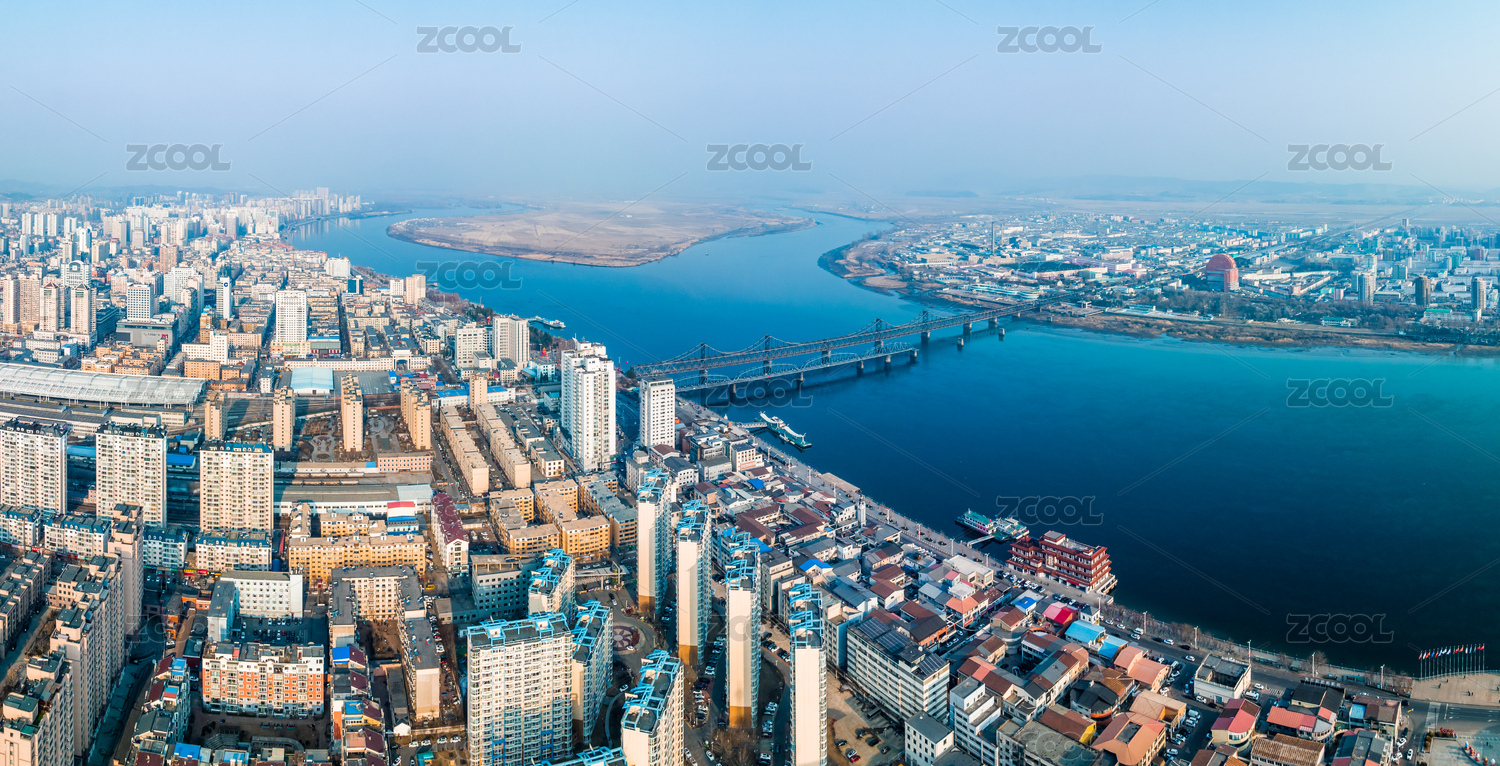遼寧丹東鴨綠江斷橋中朝兩岸風(fēng)光航拍