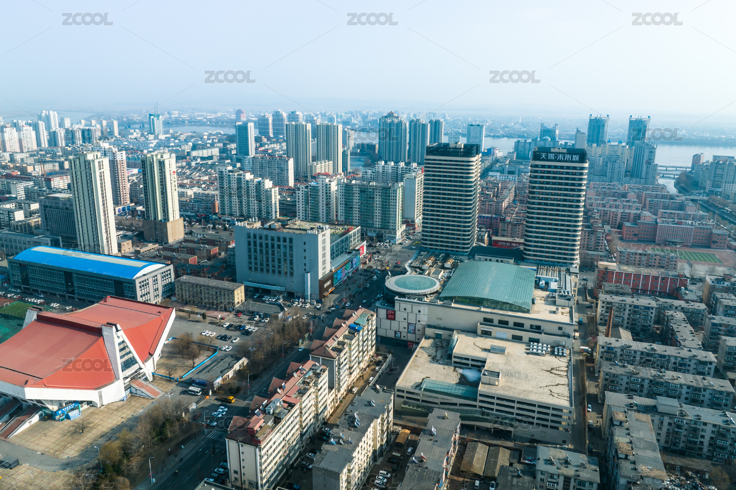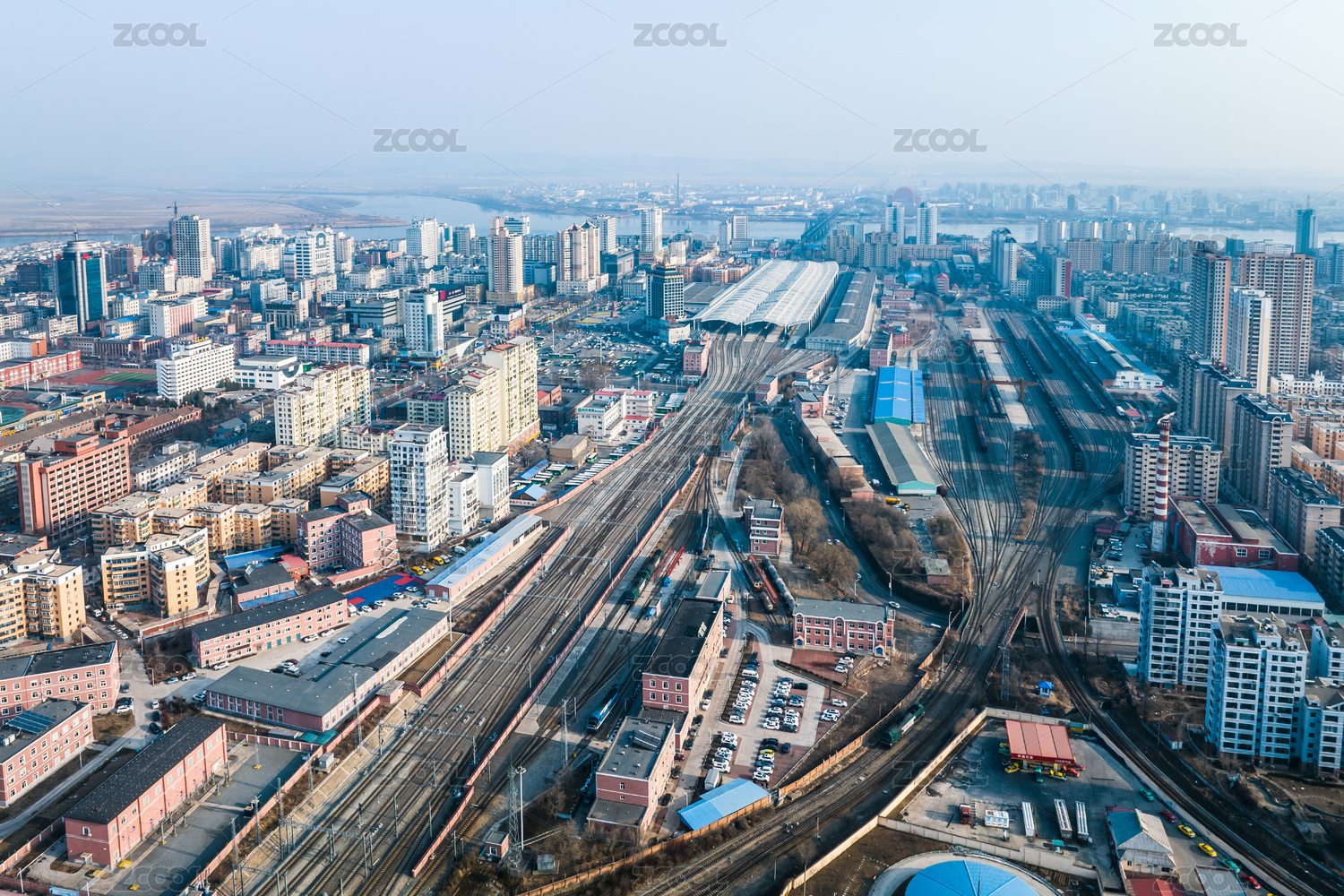 遼寧丹東城市高樓火車站風(fēng)光航拍