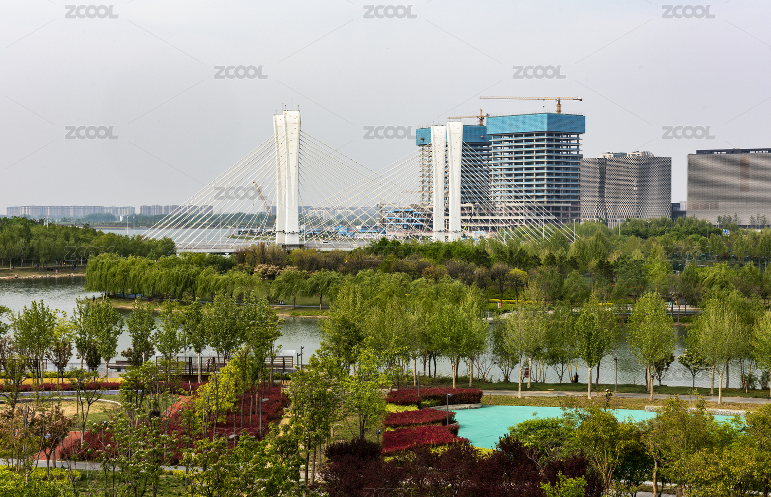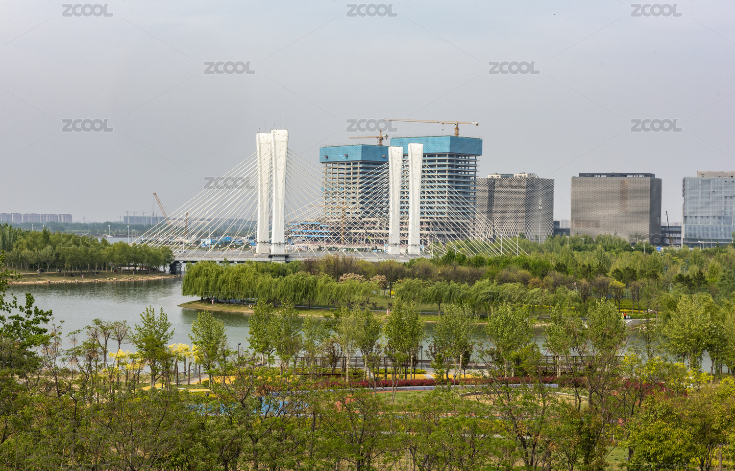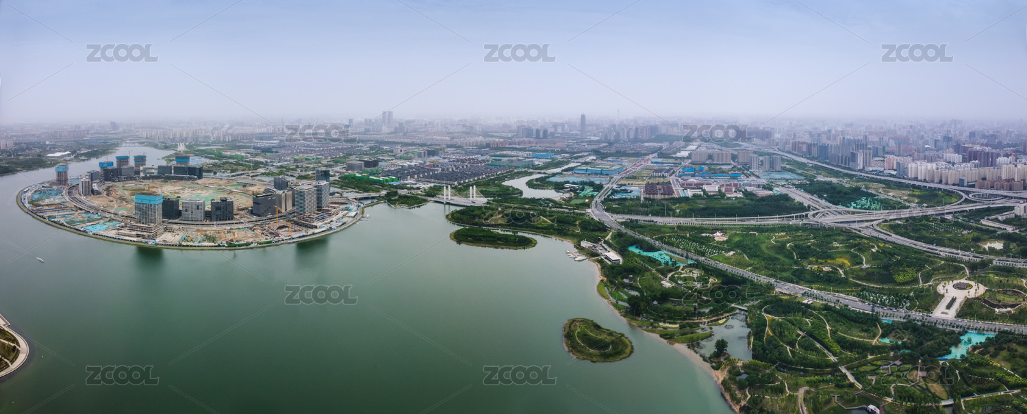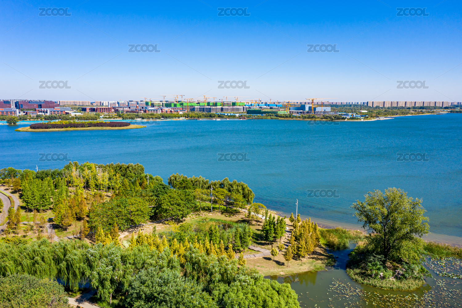 航拍中國河南鄭州鄭東新區(qū)北龍湖濕地公園