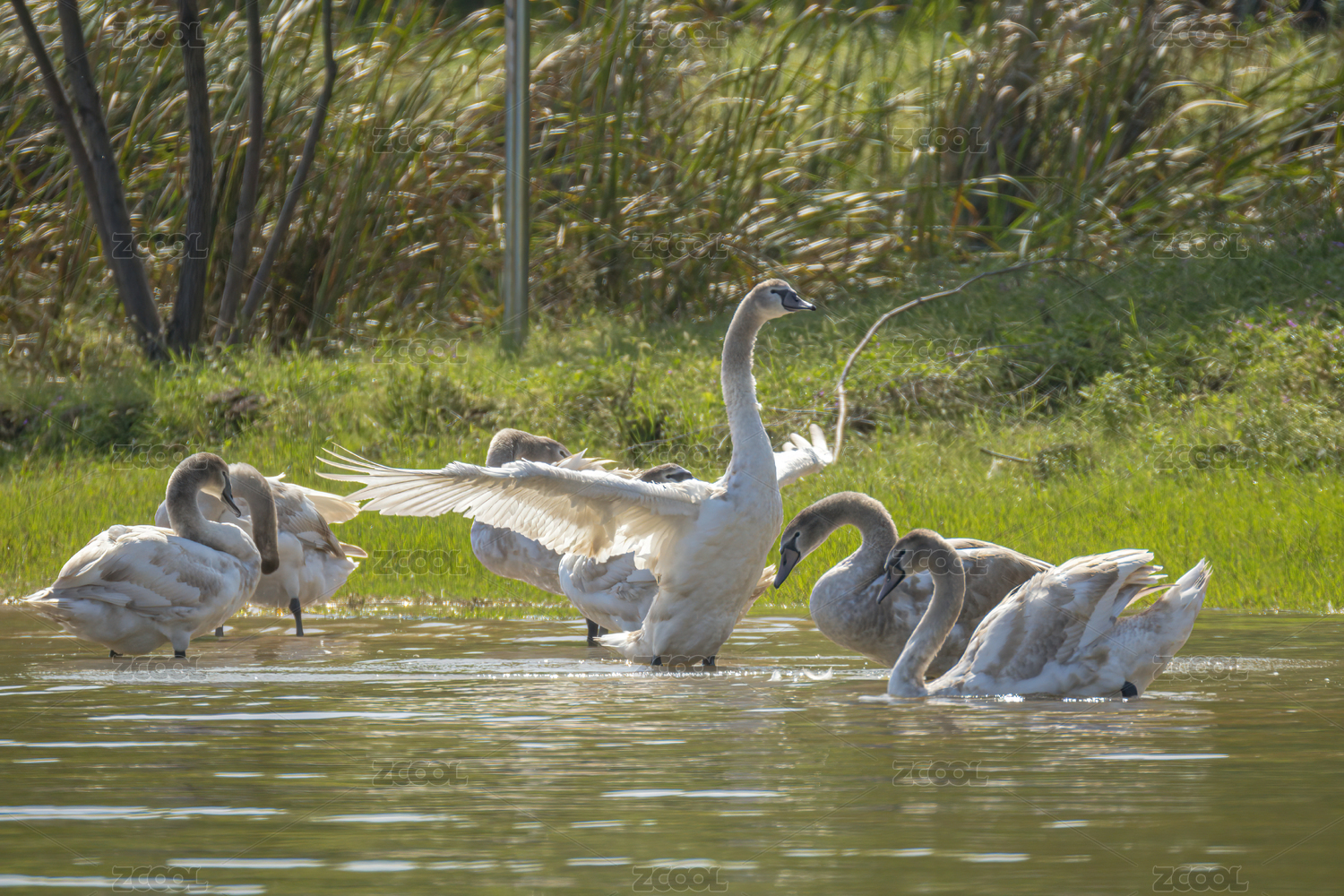 鄭州北龍湖濕地公園疣鼻天鵝白天鵝水中暢游