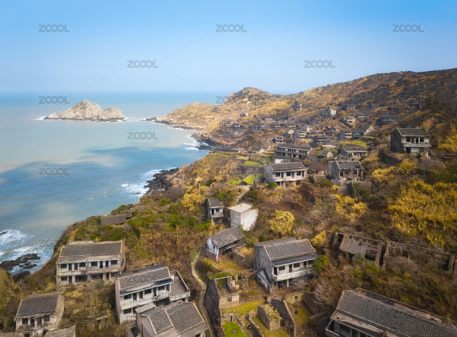 航拍浙江省嵊泗縣嵊山鎮(zhèn)無人村自然建筑風(fēng)光