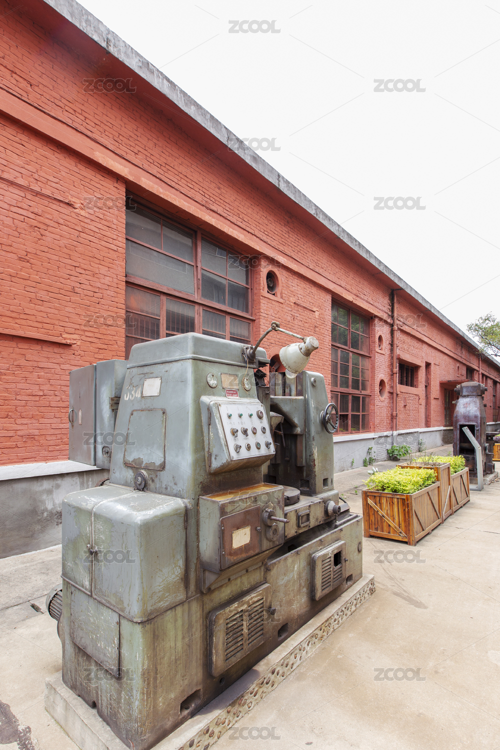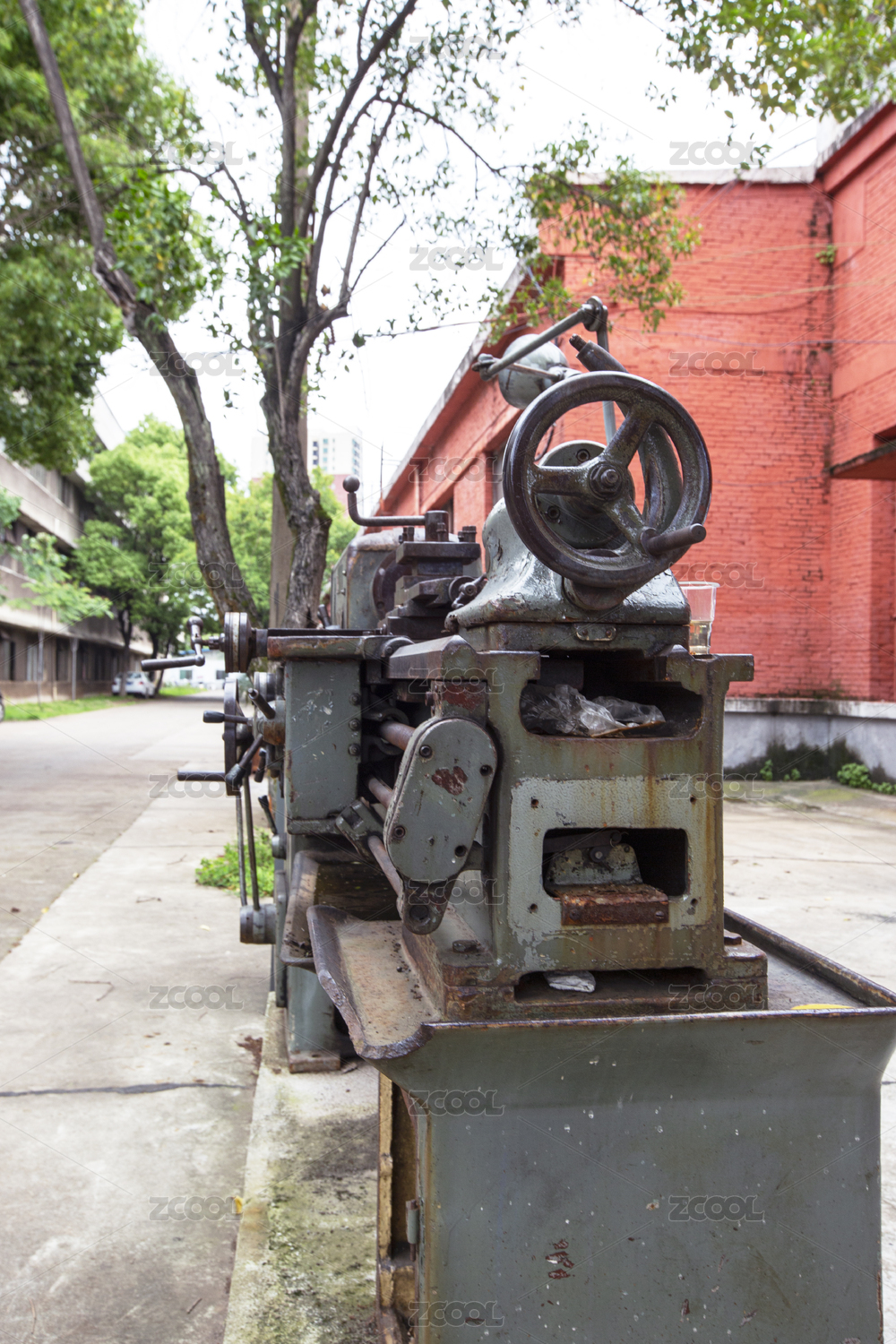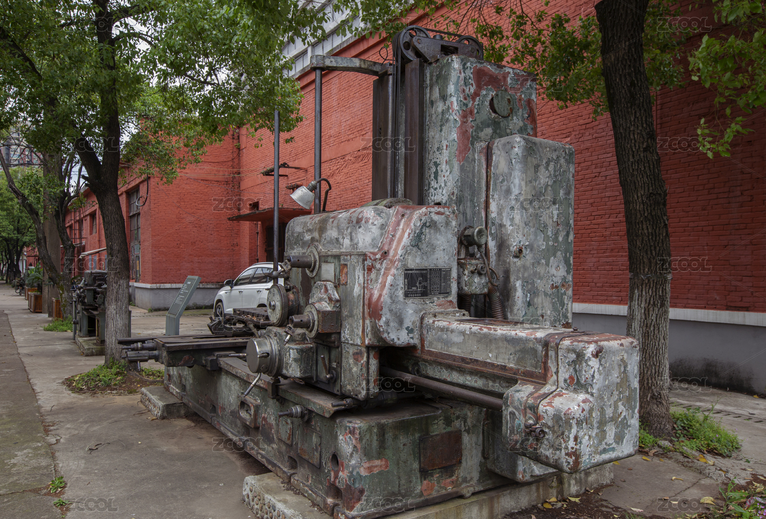 戶外公園展示的復(fù)古工業(yè)機(jī)床設(shè)備