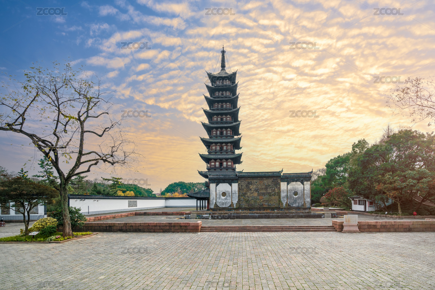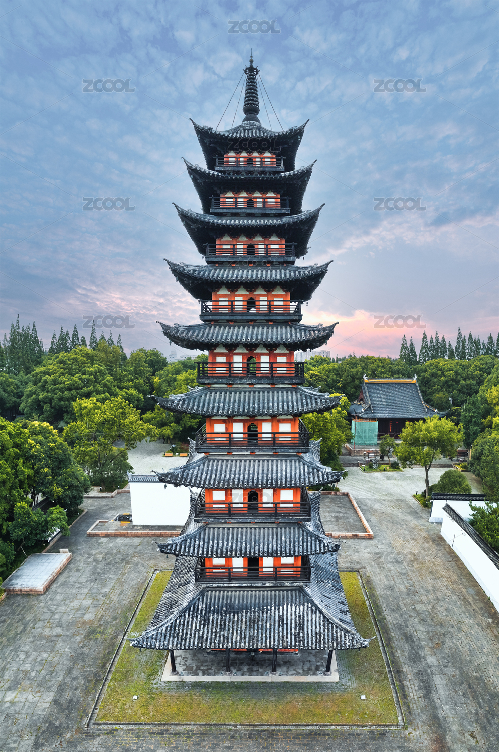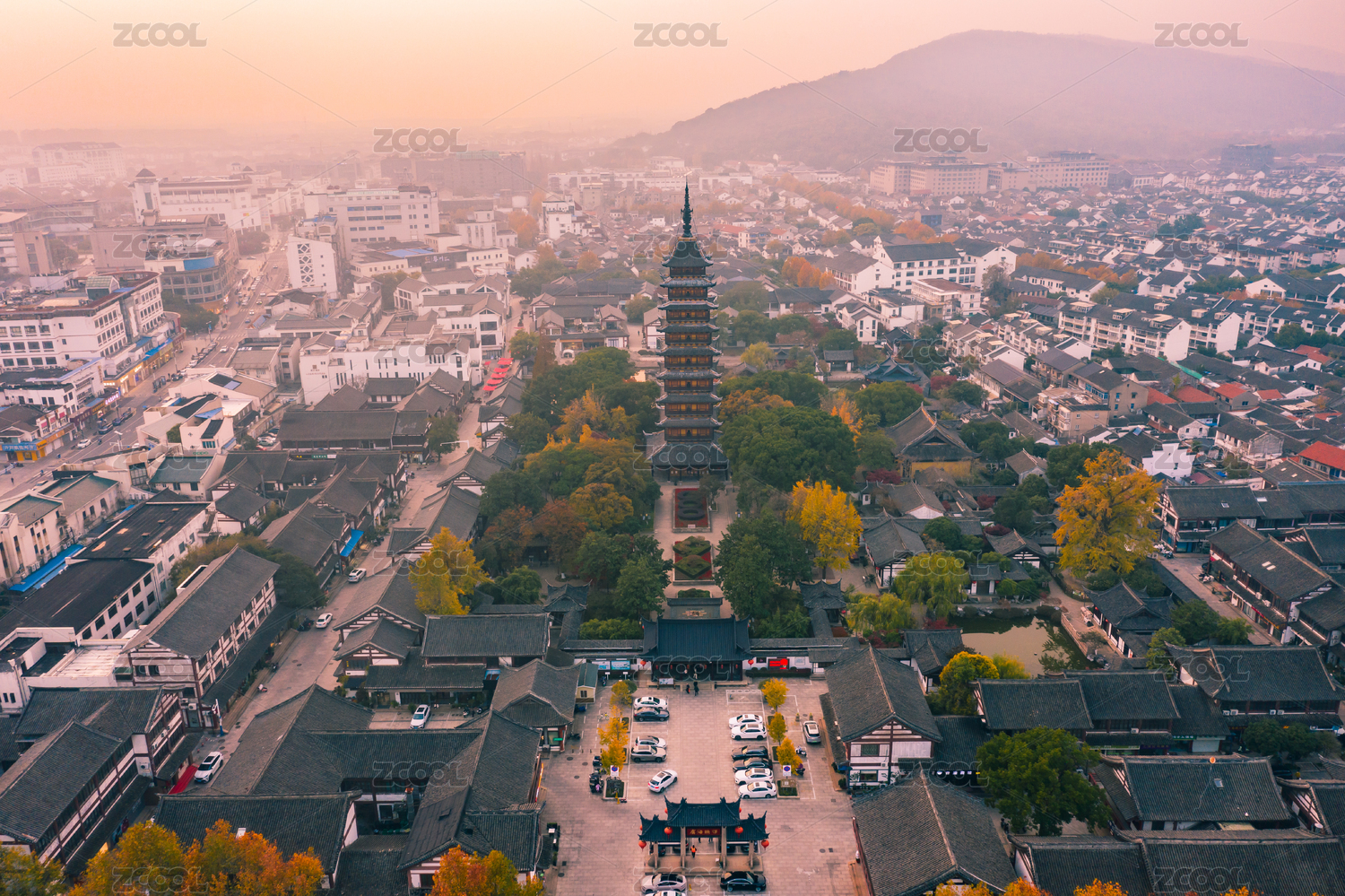 常熟市方塔園秋季日落航拍
