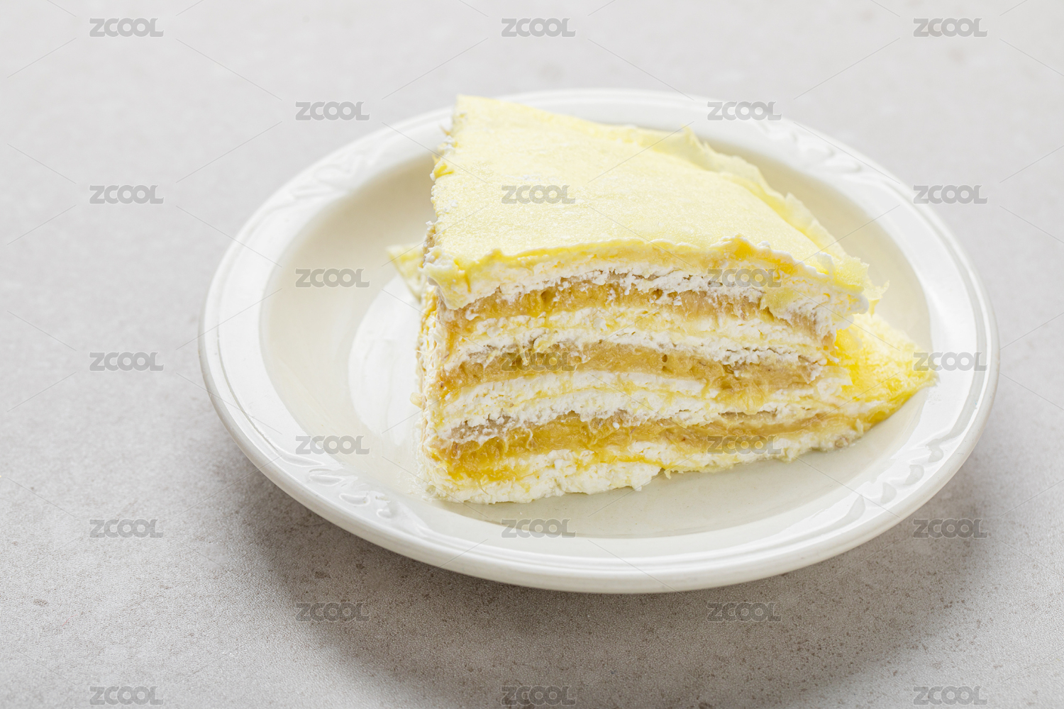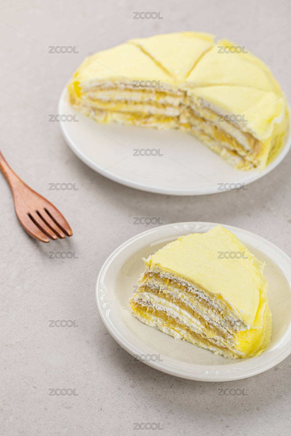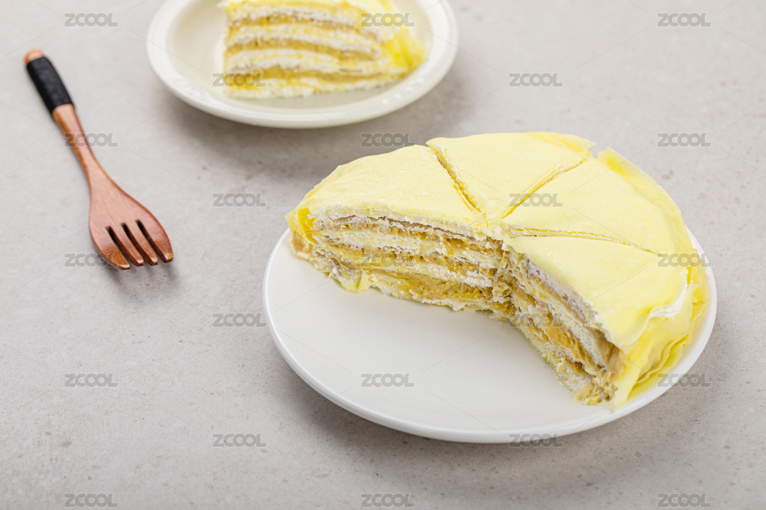 盤(pán)子上美味可口的榴蓮千層蛋糕