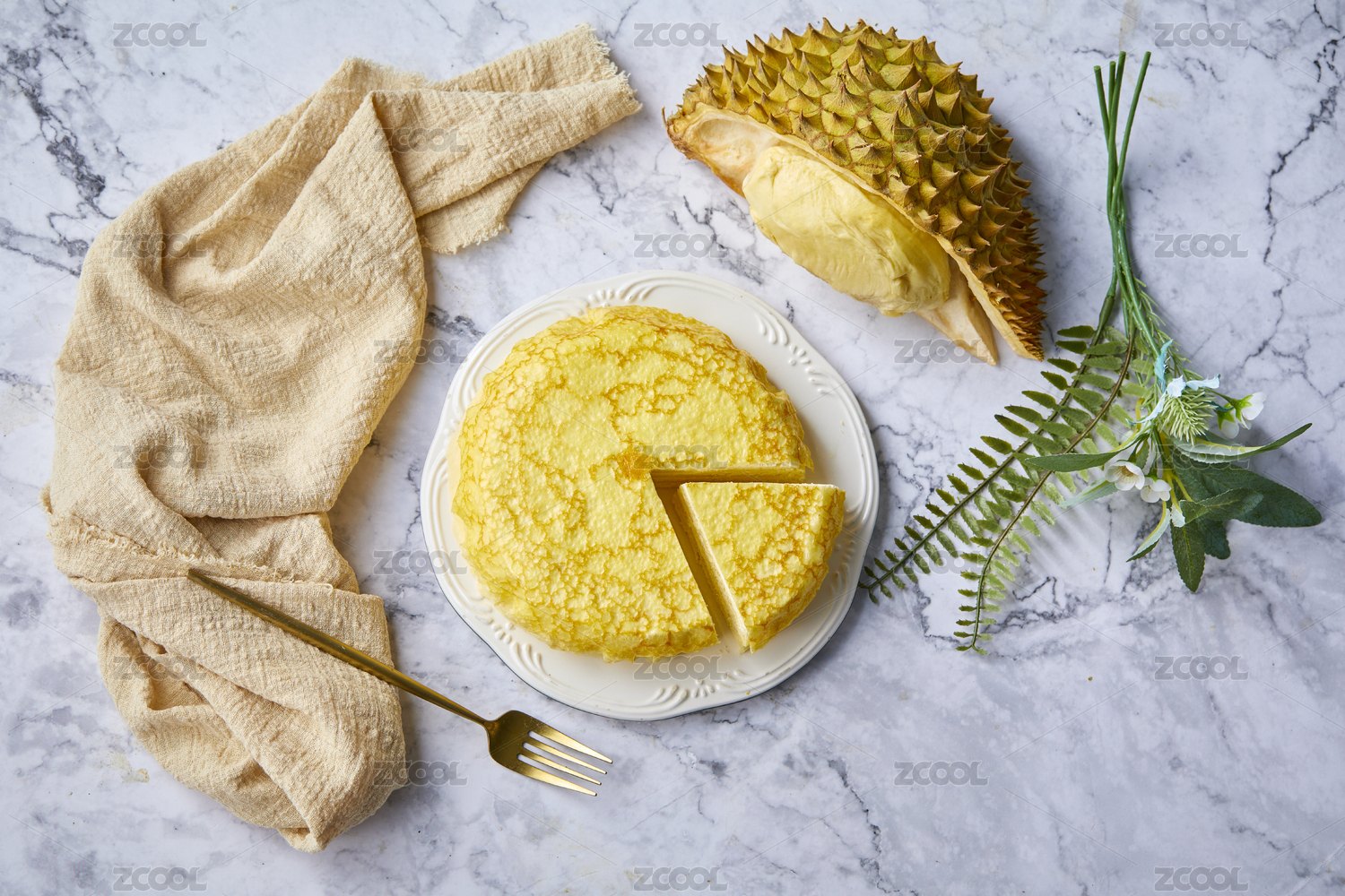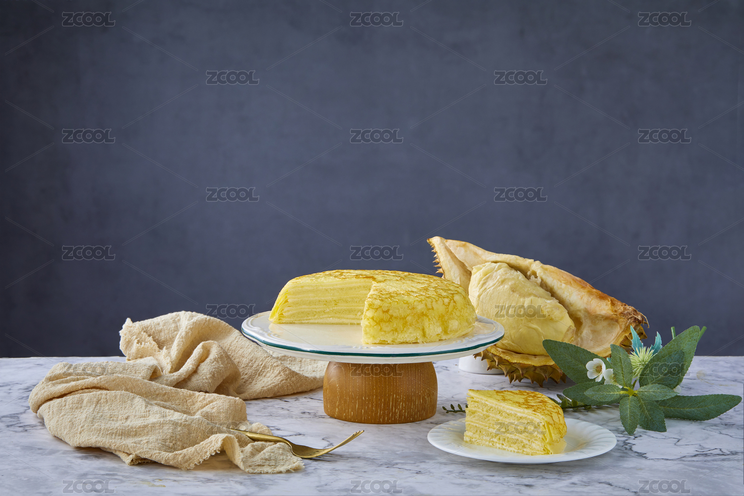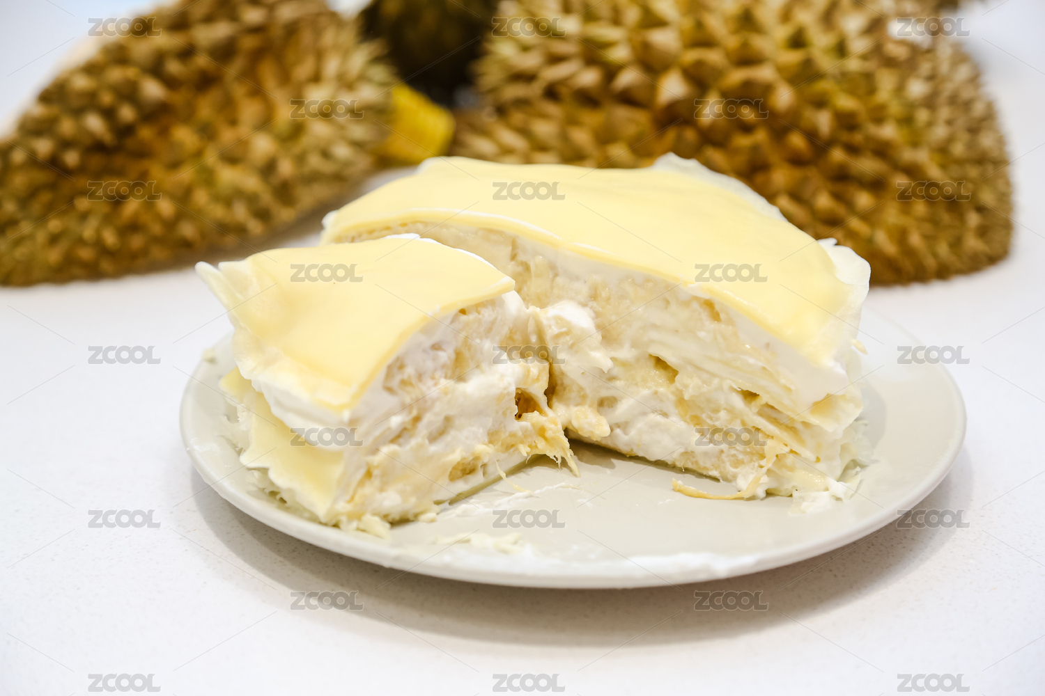 盤(pán)子上美味可口的榴蓮千層蛋糕