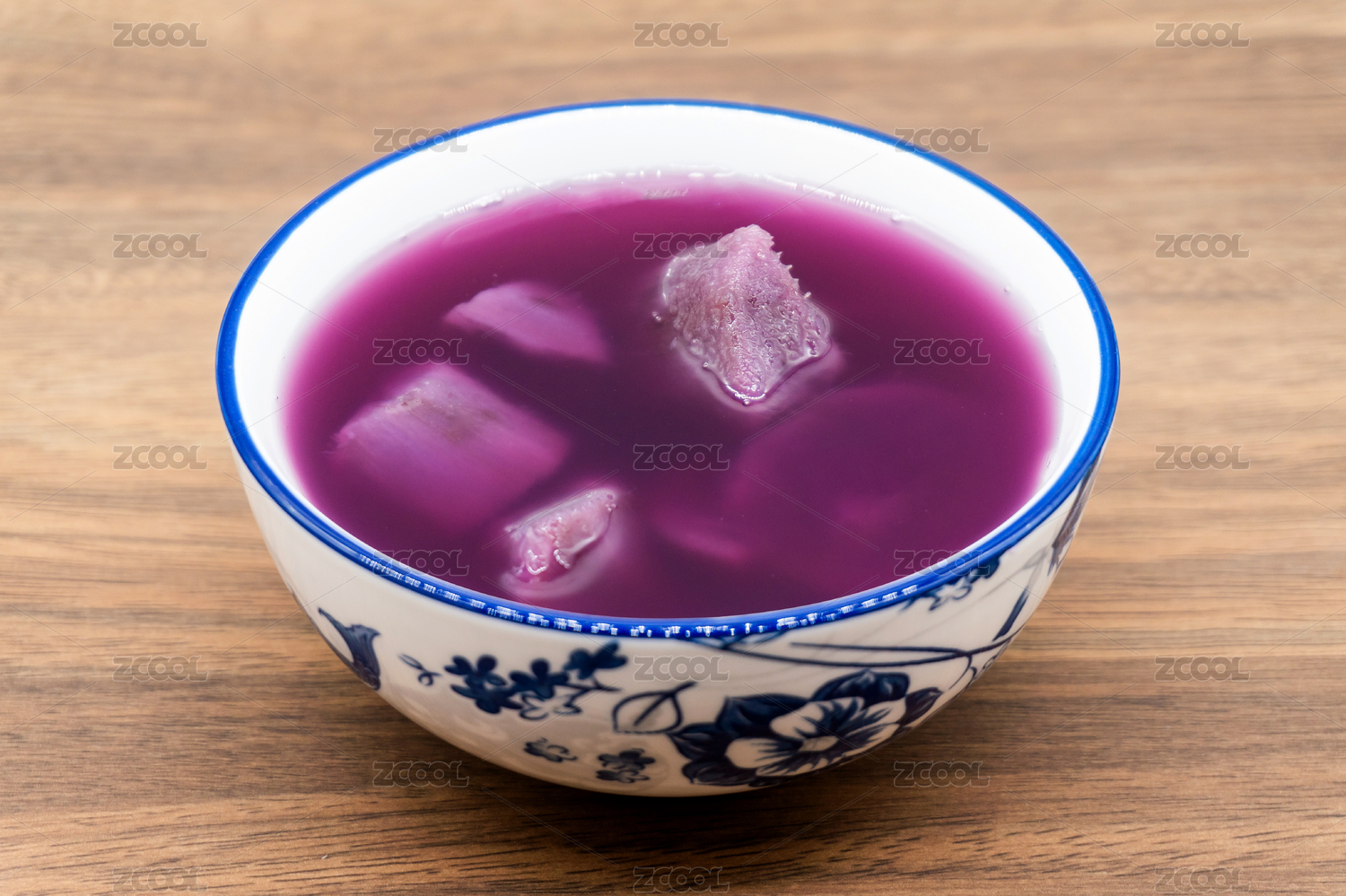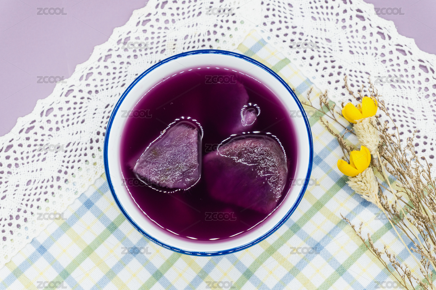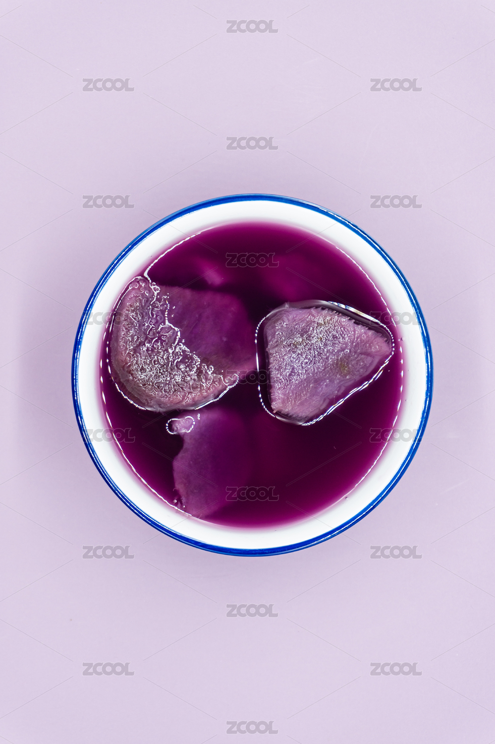 紫色背景夏日甜品一碗紫薯糖水
