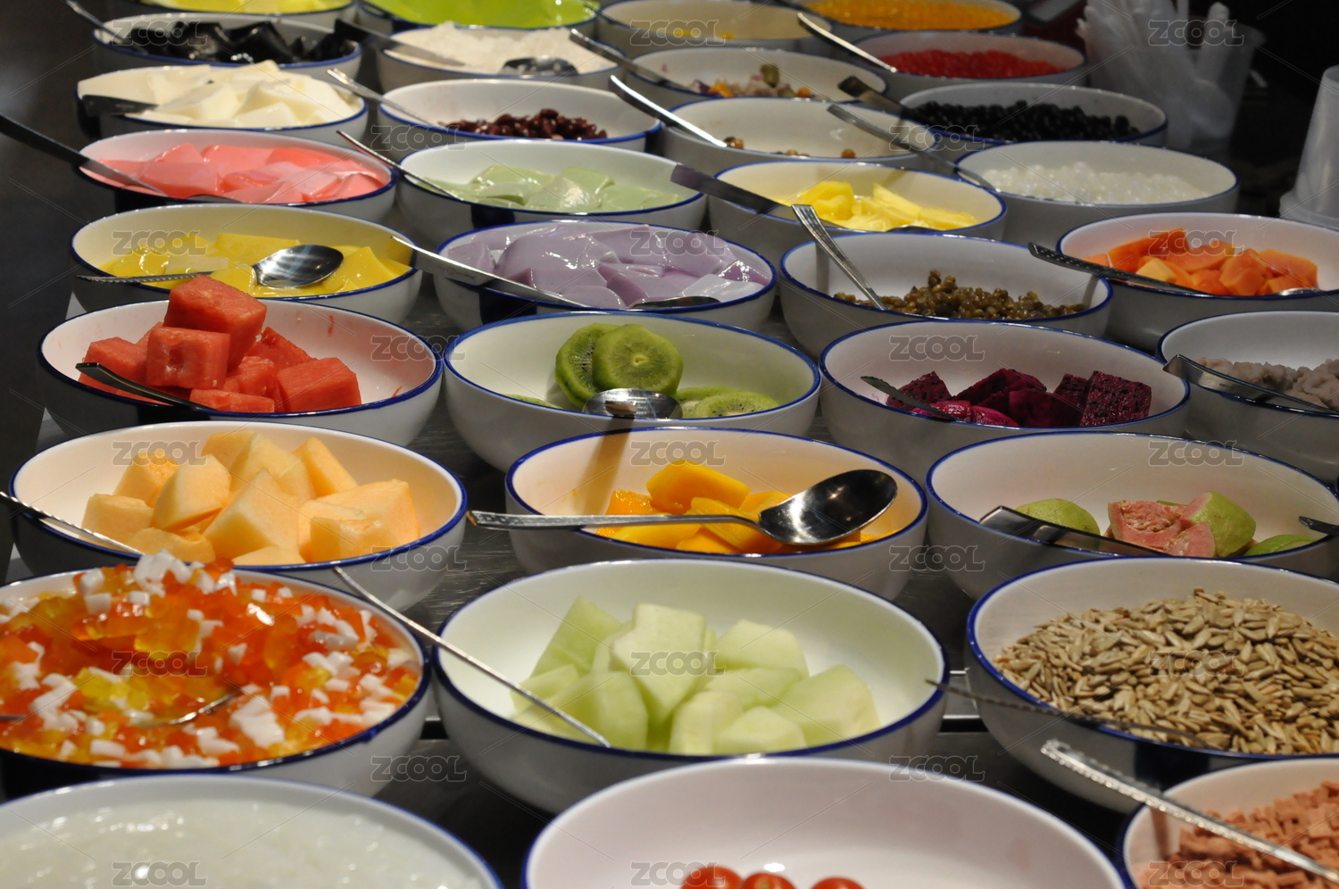 甜品店里整齊擺放的配料